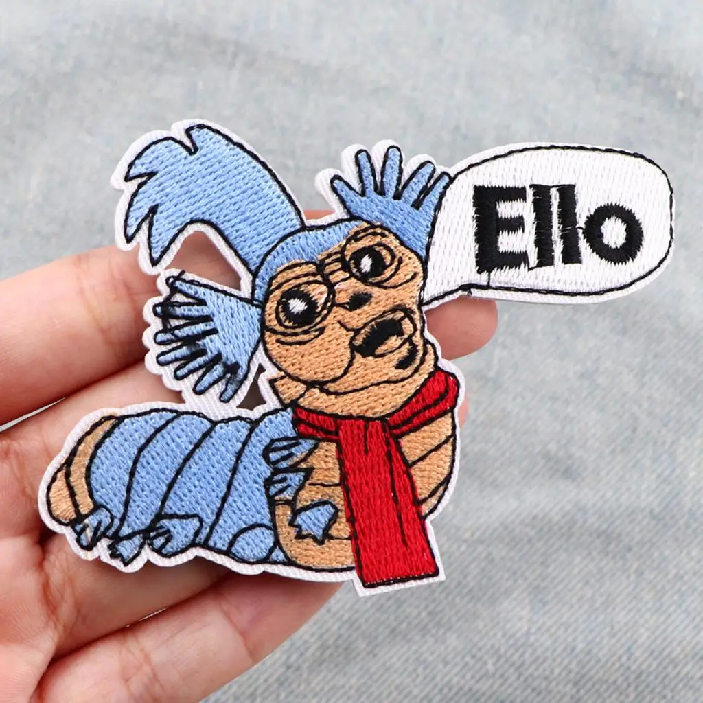AD2878 parche bordado de lombriz Ello, parches para planchar en la ropa, parches de insectos feos de dibujos animados divertidos para chaquetas, pegatinas de parche de costura DIY