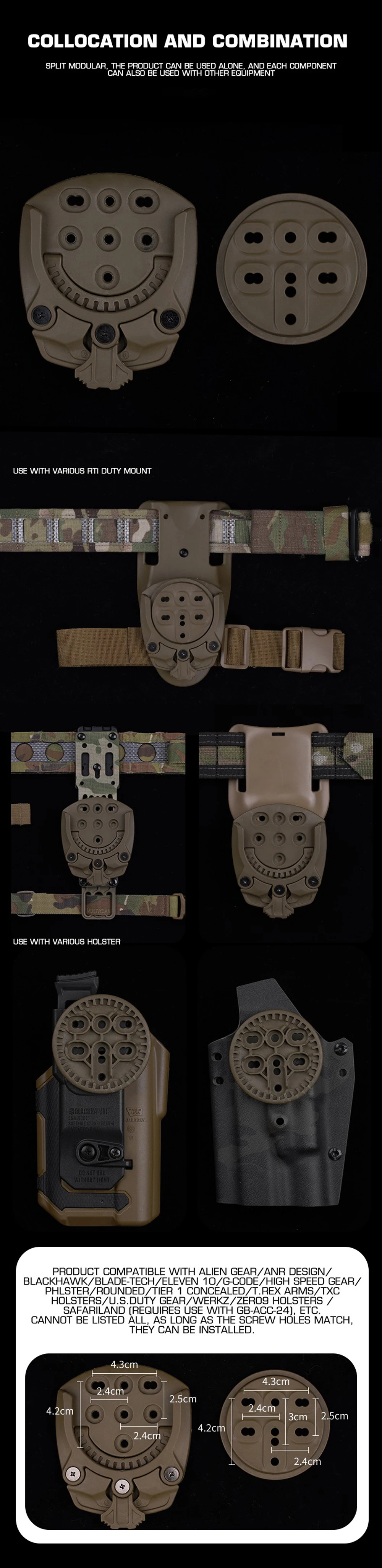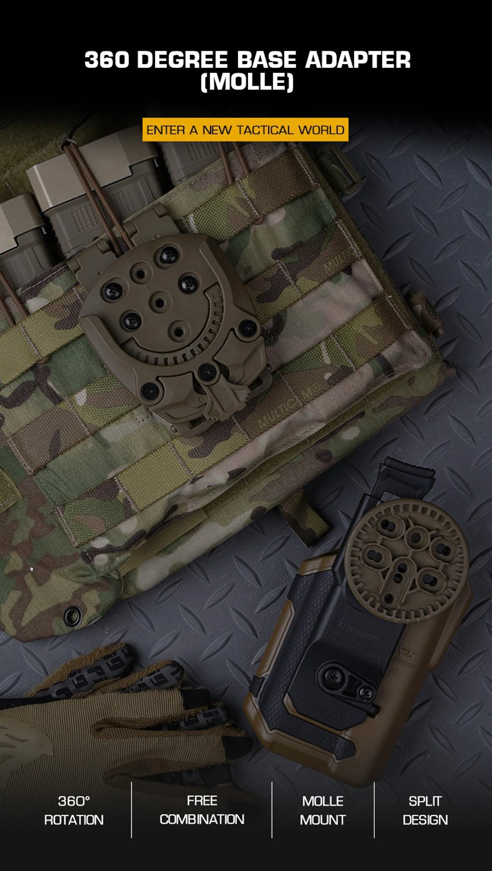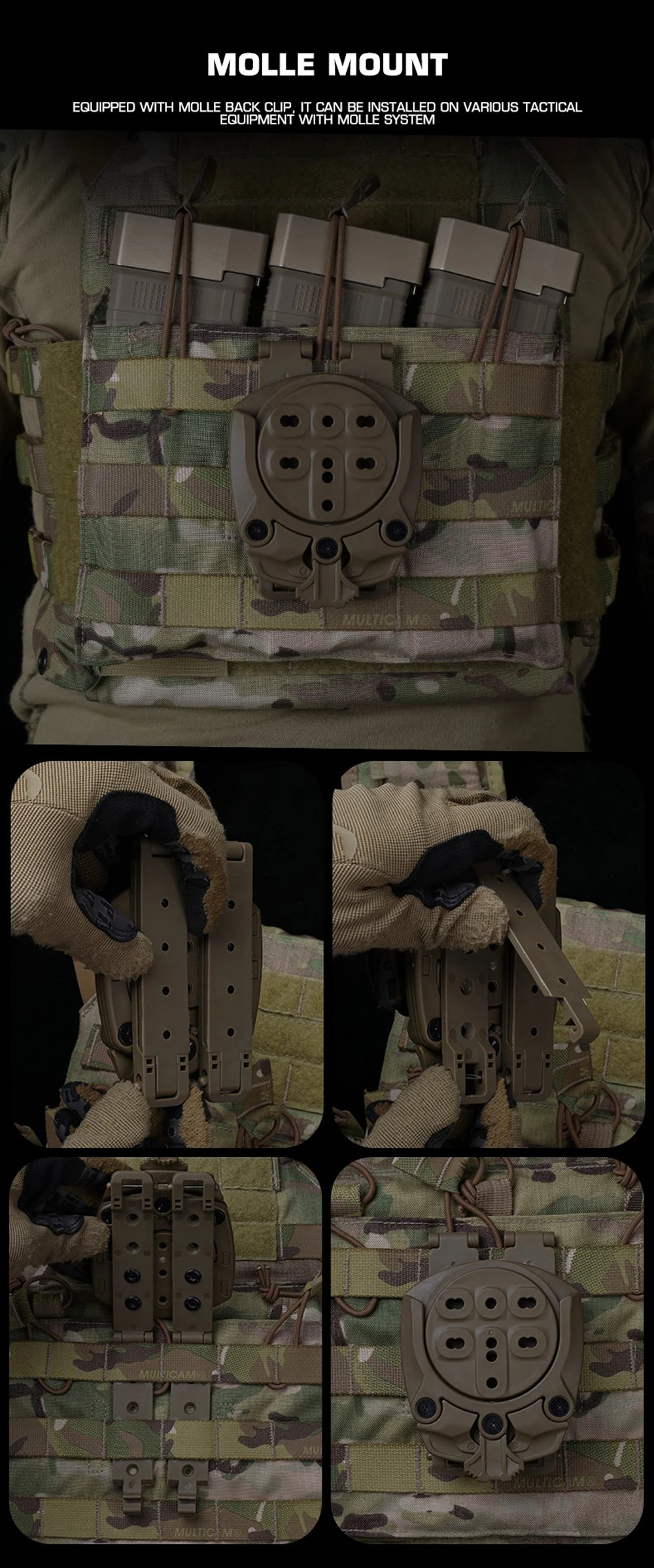 Adaptación de funda táctica Molle, funda giratoria de 360 grados para caza, Base de montaje, accesorios modulares para Paintball Airsoft