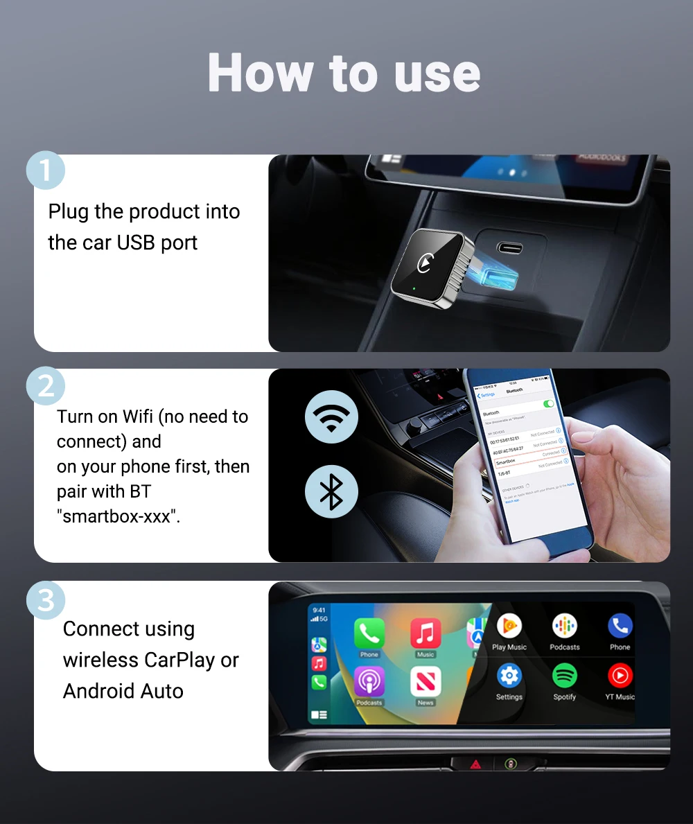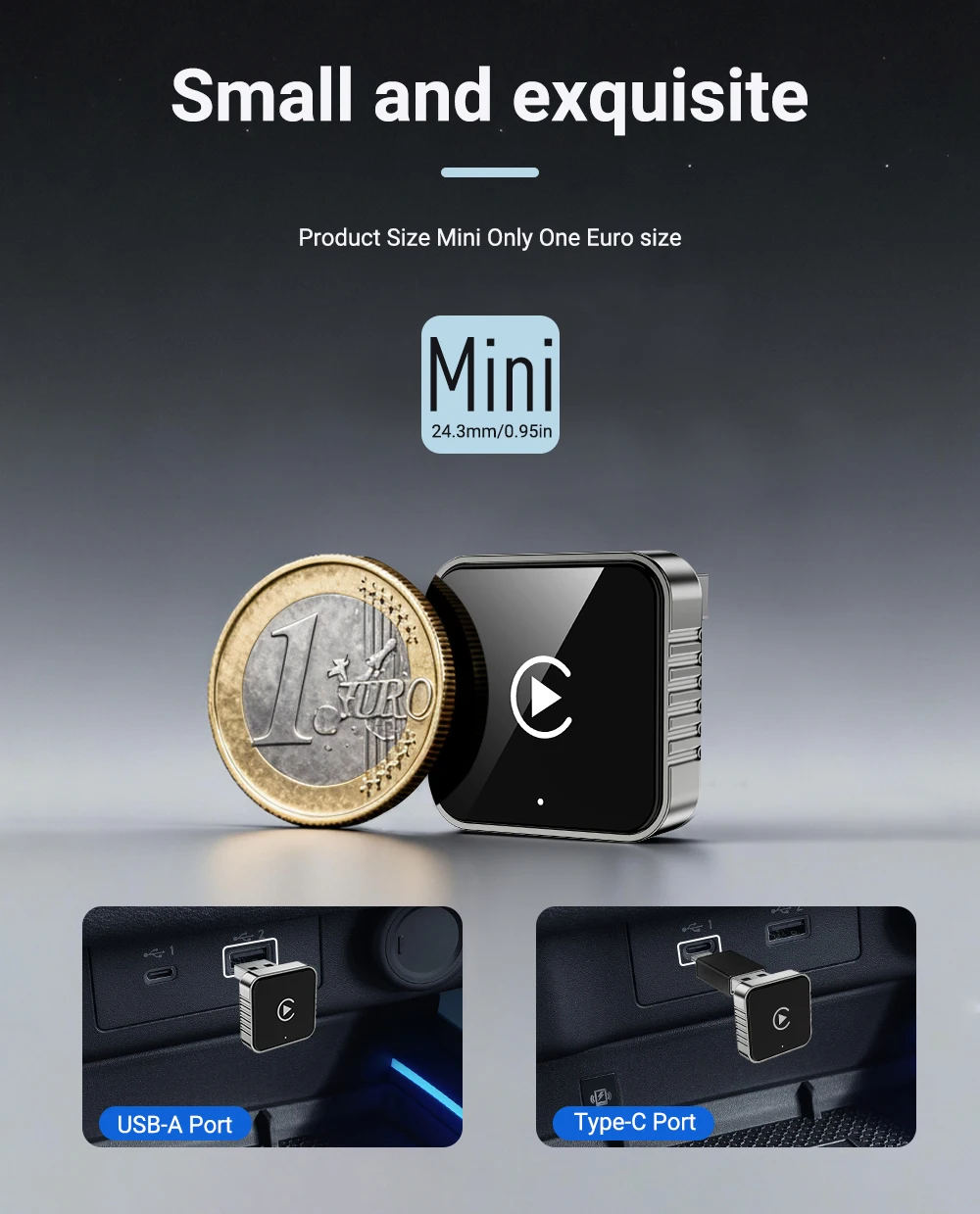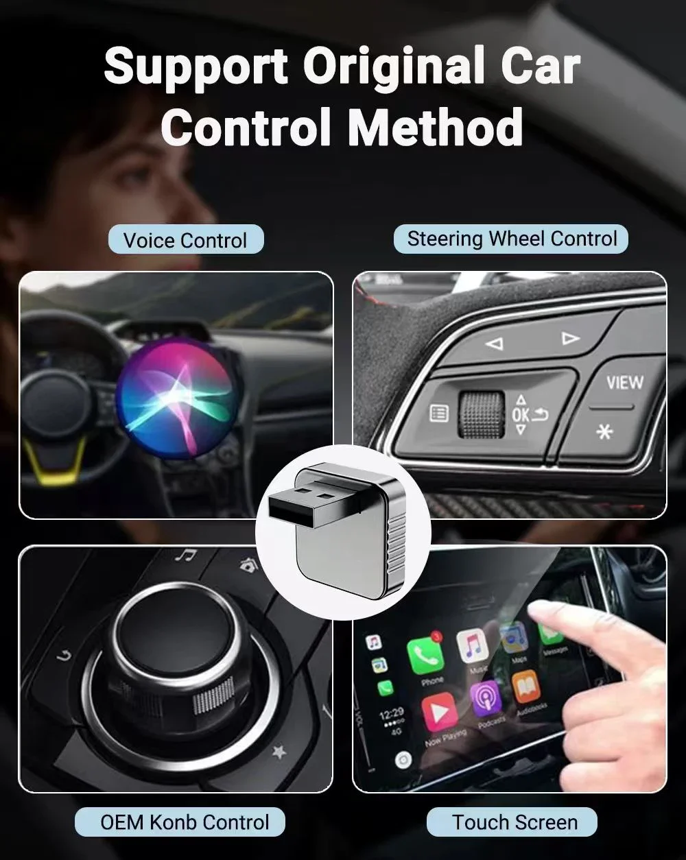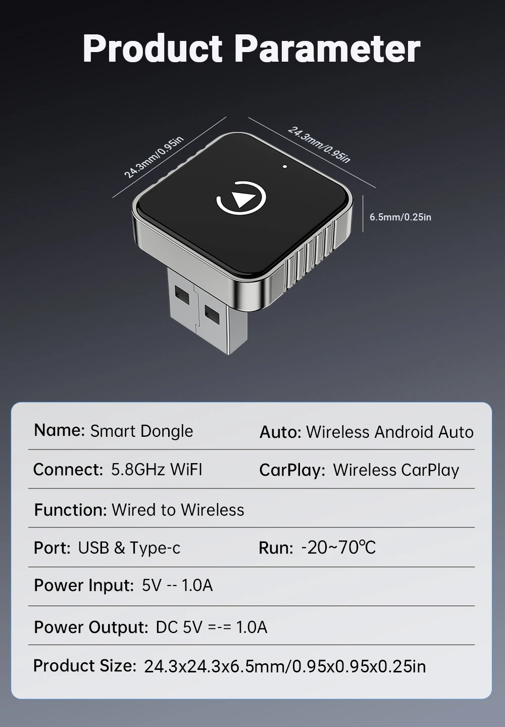 Adaptador 2 en 1 con cable a inalámbrico CarPlay Android Auto para estéreo de coche OEM con Dongle USB Mini caja inteligente Plug and Play Blueto