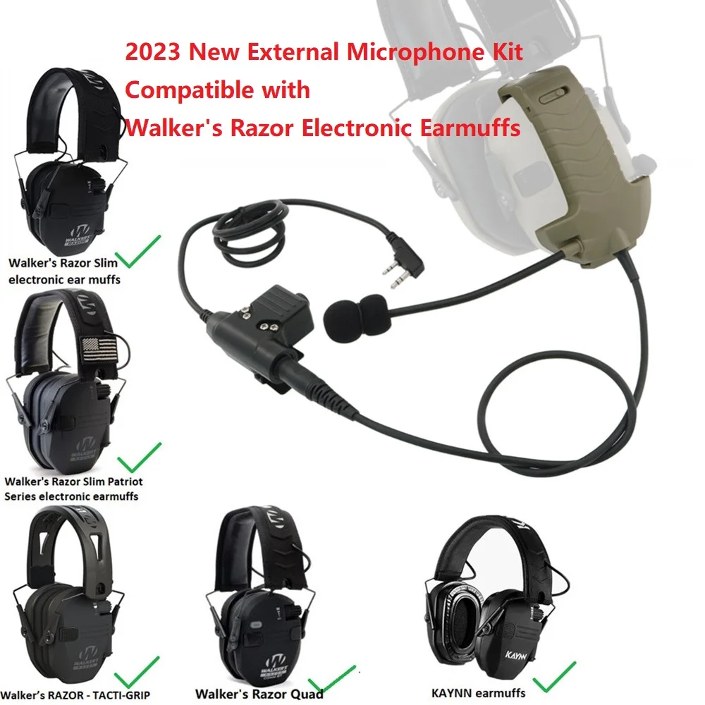 Adaptador de auriculares tácticos, Kit de micrófono externo para orejeras electrónicas Walkerrazor, auriculares antiruido para caza y tiro