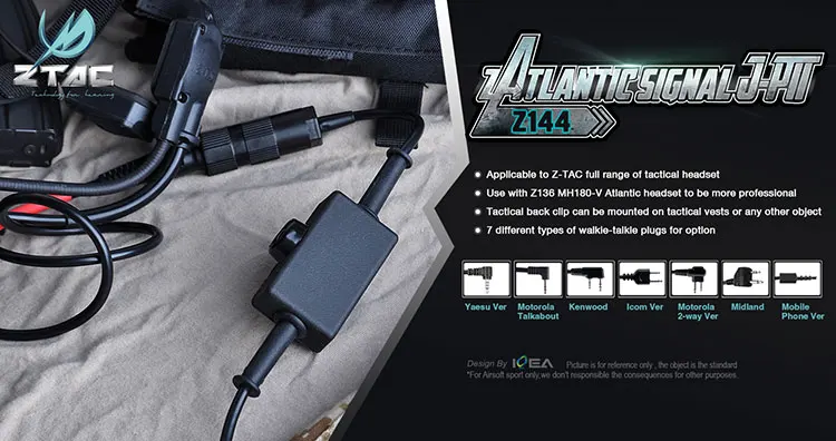 Adaptador de auriculares tácticos PTT, Z-TAC, militar, Softair, MH180-V, señal del Atlántico, Push-talk Midland, accesorios para Airsoft, Z144