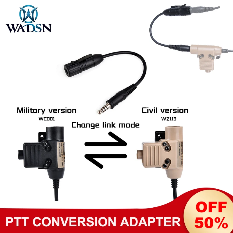 Adaptador de auriculares WADSN U94 PTT Airsoft Militry cableado transformar adaptadores convertidor de auriculares civil accesorios 7,0 enchufe