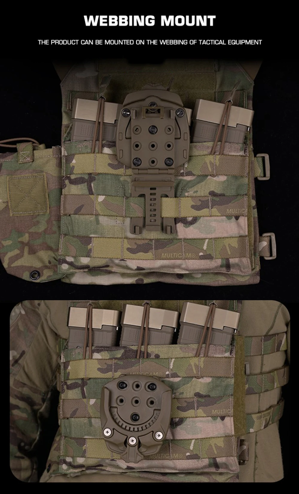 Adaptador de Base de funda para pistola de 360 grados con hebilla de Clip MOLLE, cinturón táctico, montaje para chaleco, caza, tiro, accesorios para funda Airsoft