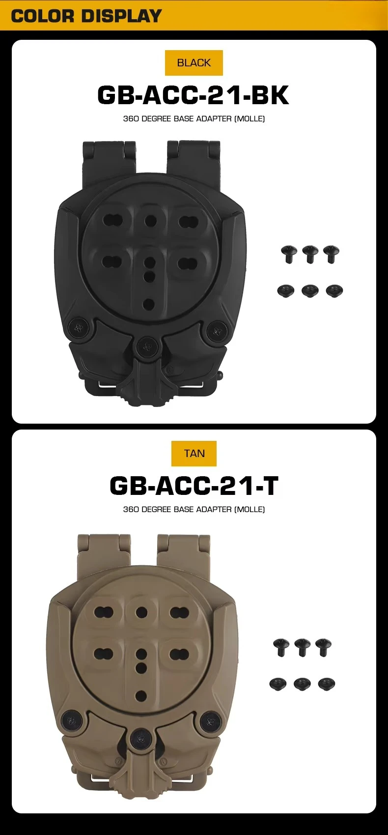 Adaptador de Base de nailon de 360 grados, accesorio de soporte de ajuste de rotación de montaje MOLLE para accesorios de cazaInformación del producto