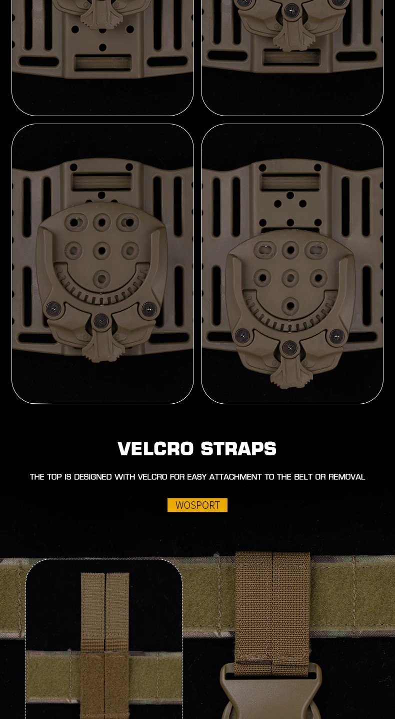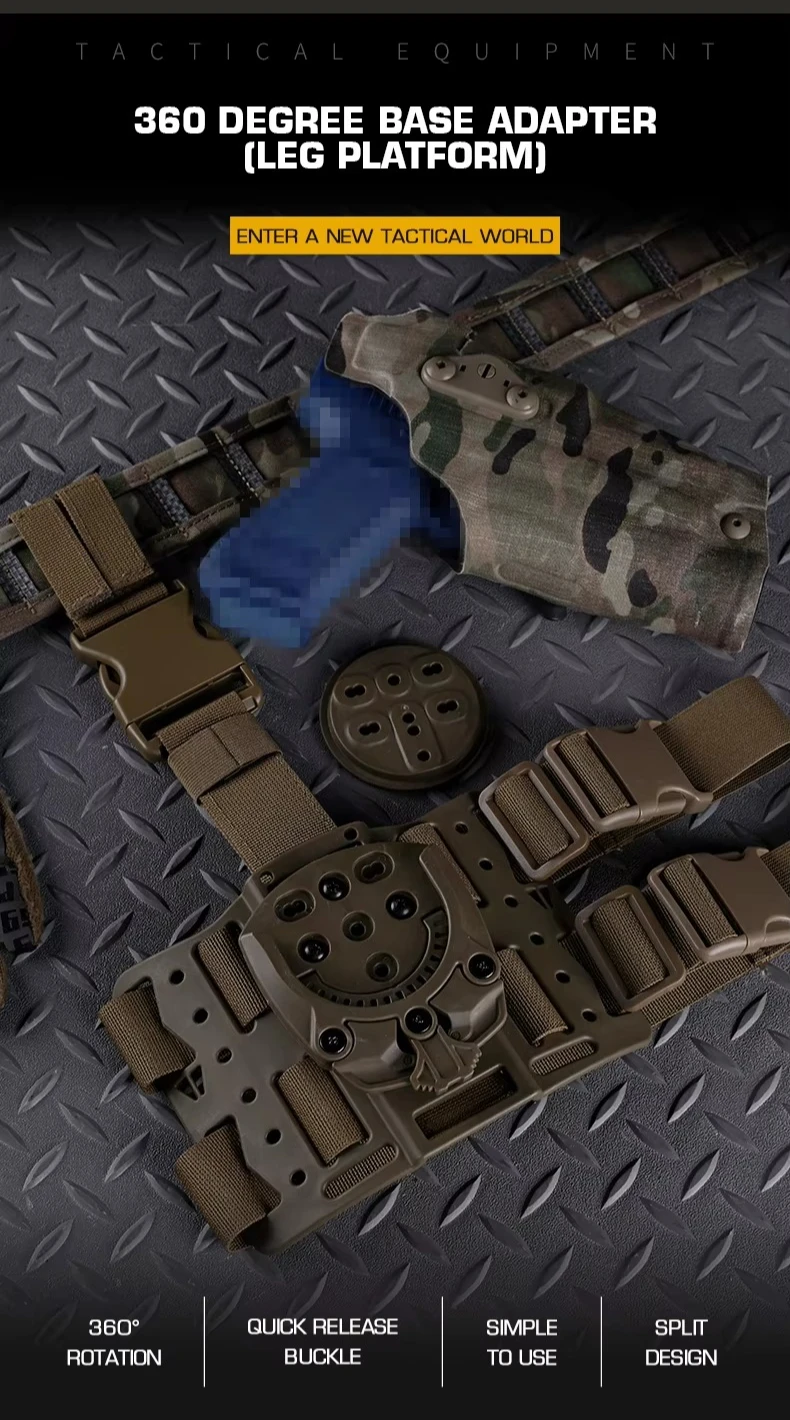 Soporte adaptador de Base de 360 grados para muslo, plataforma de pierna caída con correas de cinta mágica, ajuste de rotación, accesorios de caza Información del producto: Nombre del producto: Adaptador de base de 360 grados para muslo Color del producto: tostado/negro Material del producto: nailon