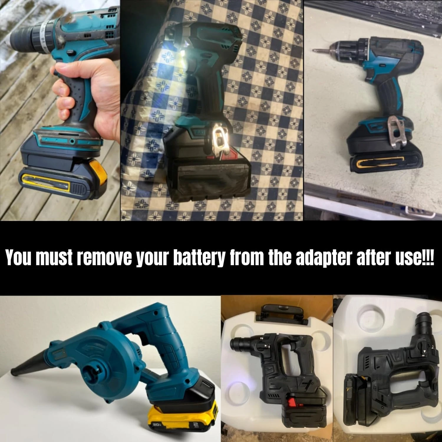 Este adaptador de batería es compatible con la mayoría de las herramientas Dew de 18V.