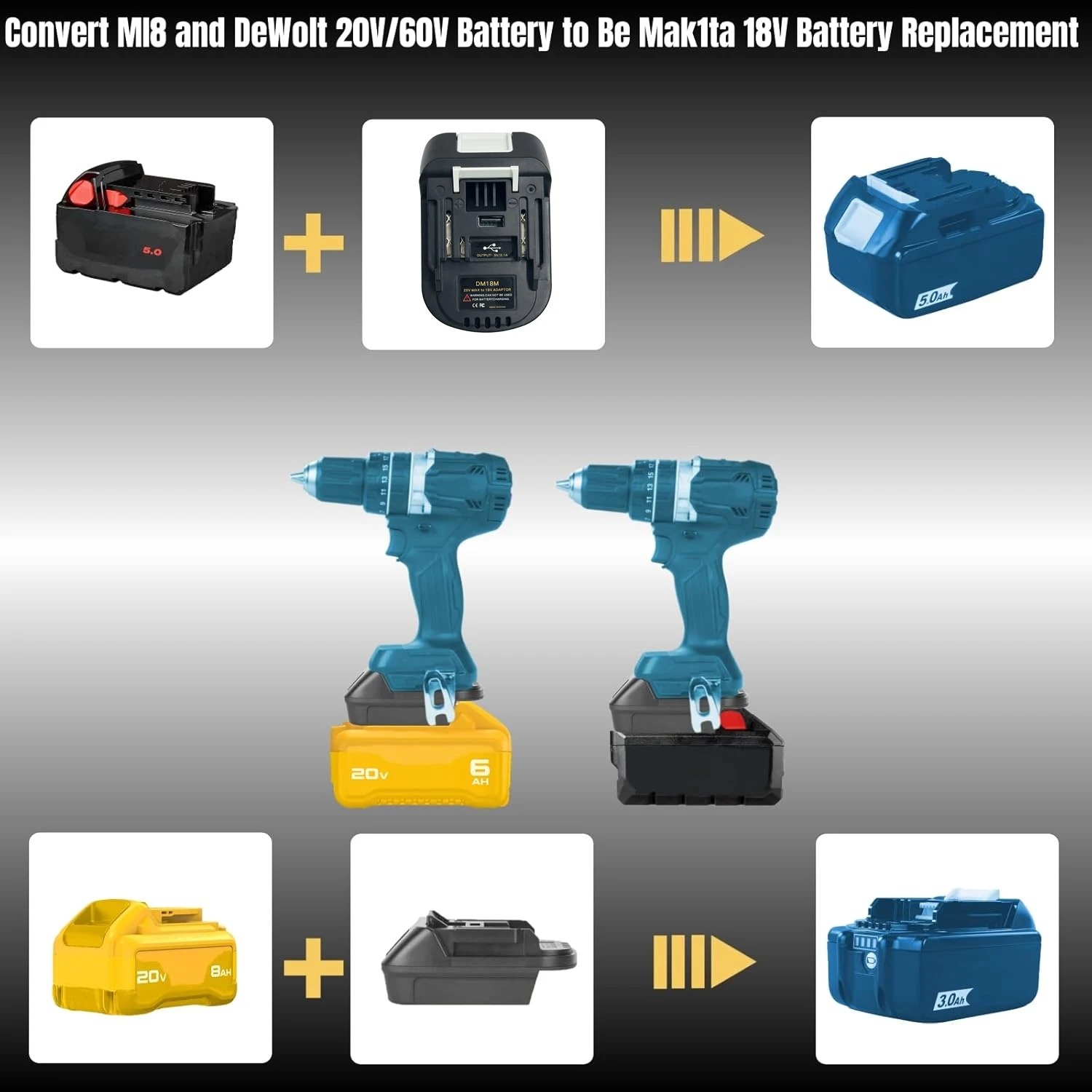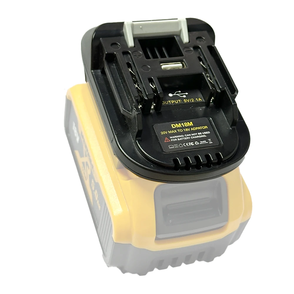 Adaptador de batería DM18M para DEWALT DCB200 DCB205 de litio de 20 V, para batería de iones de litio MILWAUKEE de 20 V para MAKITA BL1830 BL1840 BL1850 BL1860 de 18 voltios