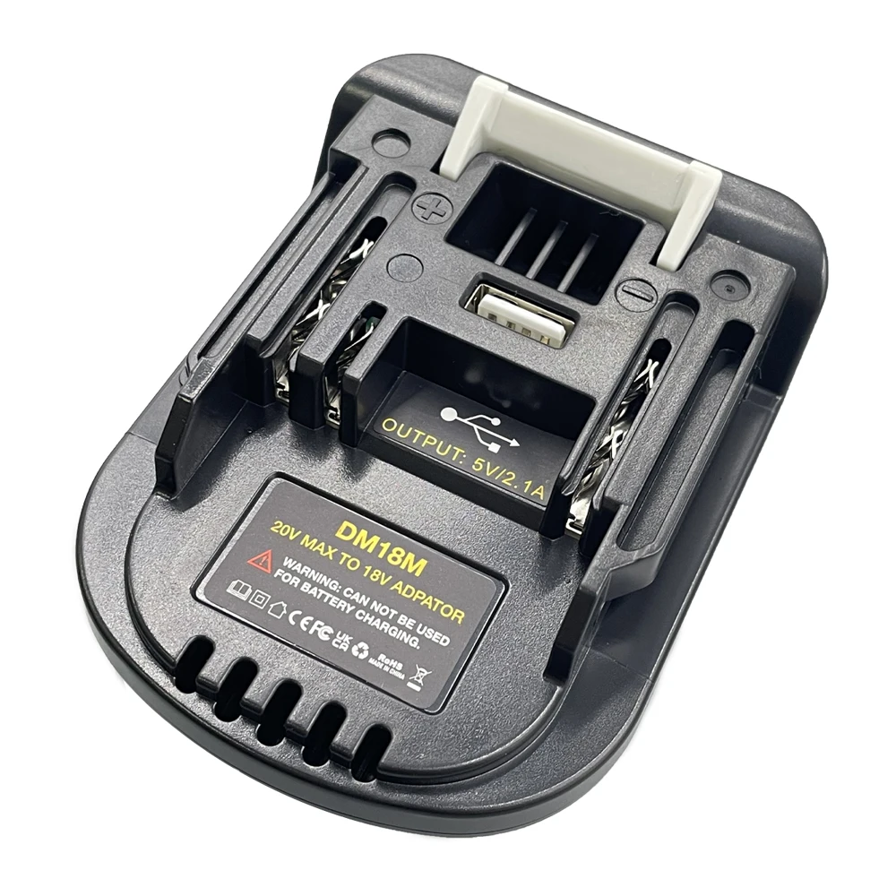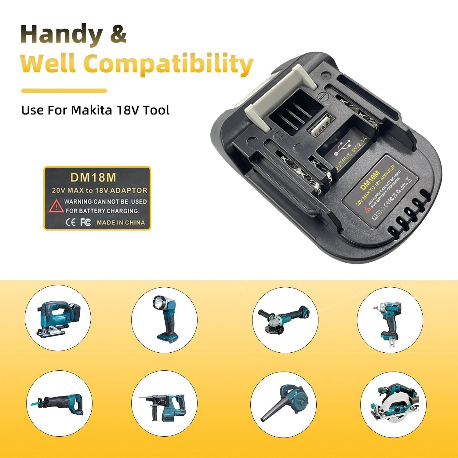 【Ventajas del convertidor】: este adaptador de herramientas eléctricas inalámbricas está hecho de material ABS, resistente y duradero.Tamaño aproximado de 4,32x2,79x1,73 pulgadas.Diseño compacto profesional y fácil instalación.Diseño de puerto de carga USB incorporado (salida: 5 V, 2,1 A máx.) para cargar productos electrónicos de baja potencia, como teléfonos inteligentes, tabletas y relojes inteligentes.