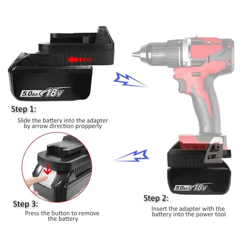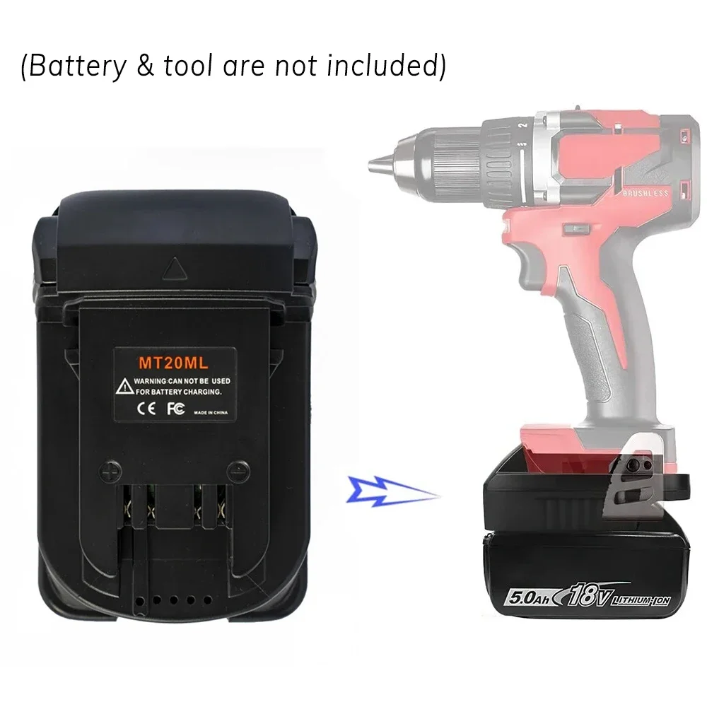 BDA35ORFE BDA350Z BDA351 BDA351RFE BDA351Z BDF450 BDF451 BDF451RFEDespués de que el adaptador convierta las baterías anteriores, pueden ser reemplazadas por la serie de baterías de litio Miwaki de 18V:48-11-1811, 48-11-1815, 48-11-1820, 48-11-1822, 48-11-1828, 48-11-1840 1841, 48-11-1850, 48-11 -1852, 48-59- 181, 48-59 1850, 982-2 4932352071, 493243063, c188, Li18, M18, M18B, M18B2, M18B4, M18BX, XCAviso:Este adaptador no se puede cargar directamente.