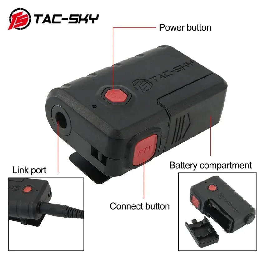 Adaptador Bluetooth de auriculares tácticos TAC-SKY para PELTO COMTA/MSA Sordin/AMP/TCI/TEAHEADSET/auriculares de tiro Airsoft