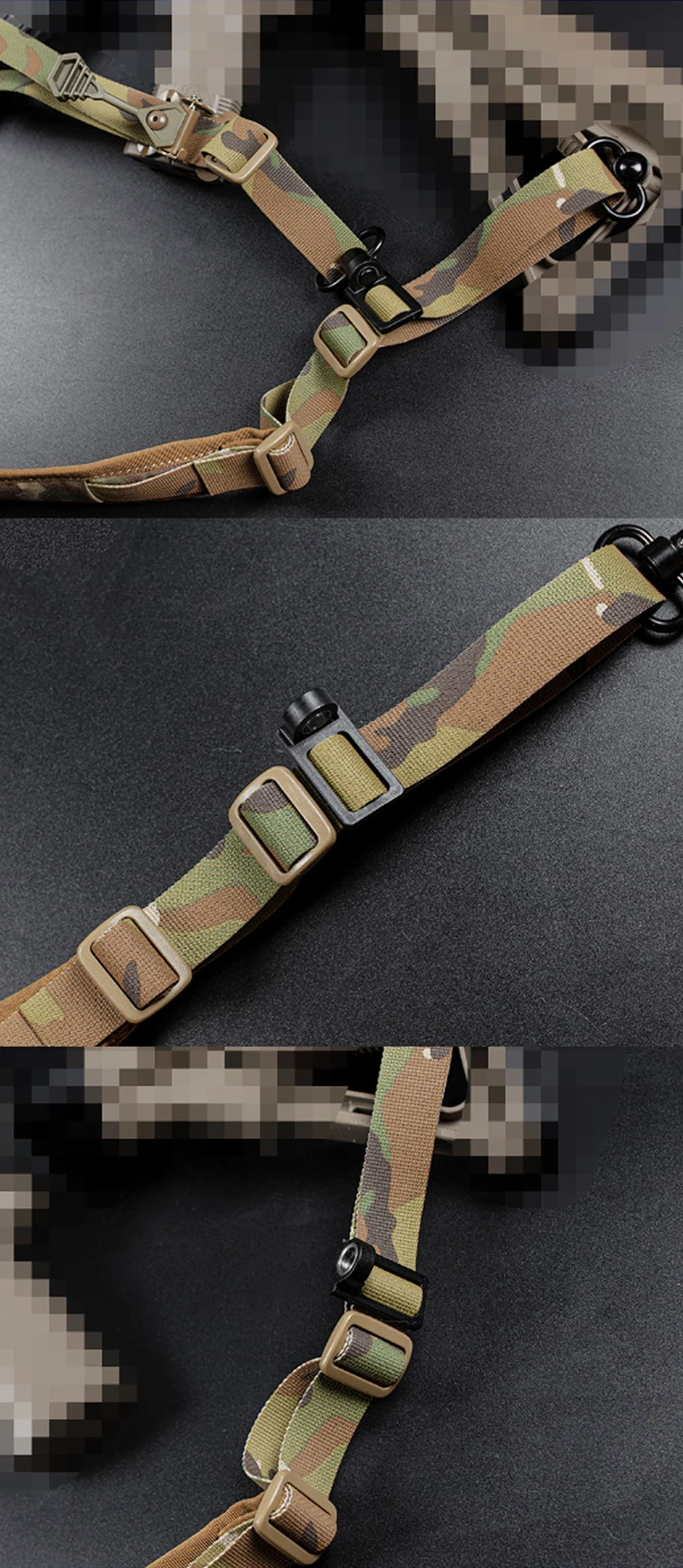 ① Convierte fácilmente entre 2 y 1 cabestrillos sin el uso de anillos en D o ganchos.
