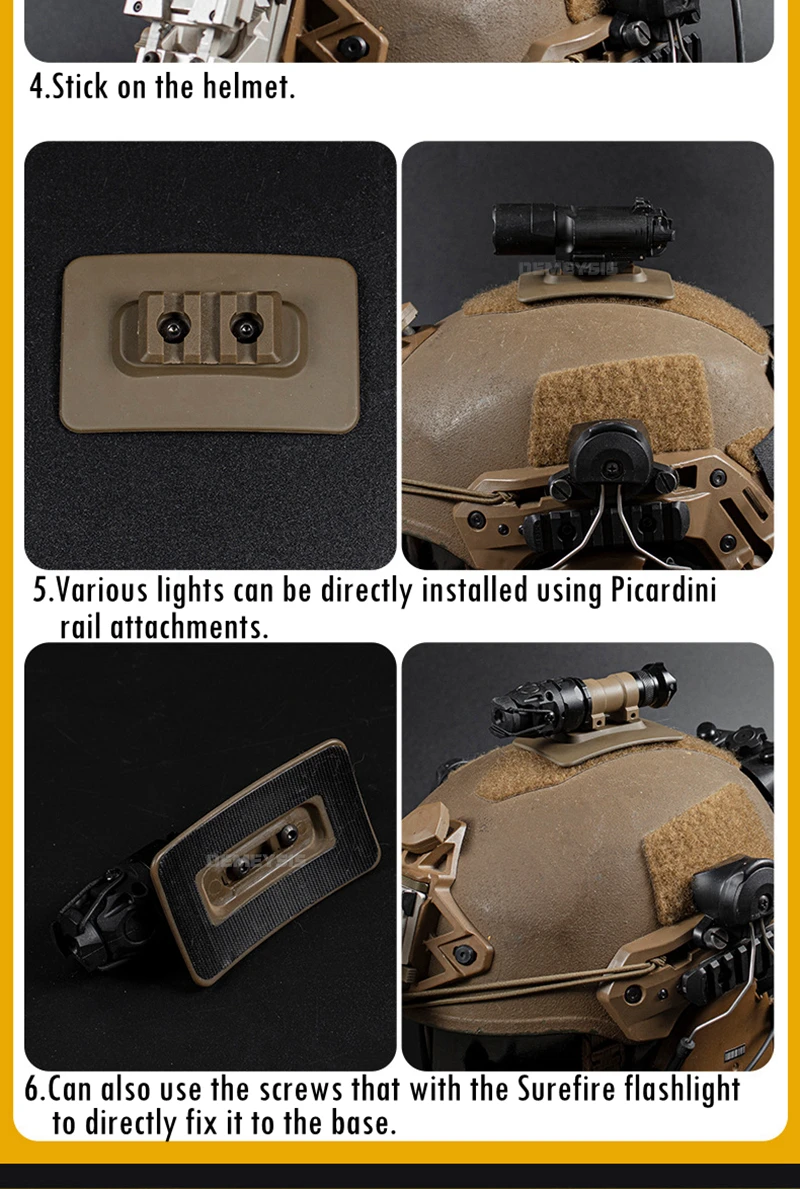● Fácil de usar. Se puede pegar en cualquier superficie de gamuza de Velcro del casco, ahorrando espacio en el riel del casco.