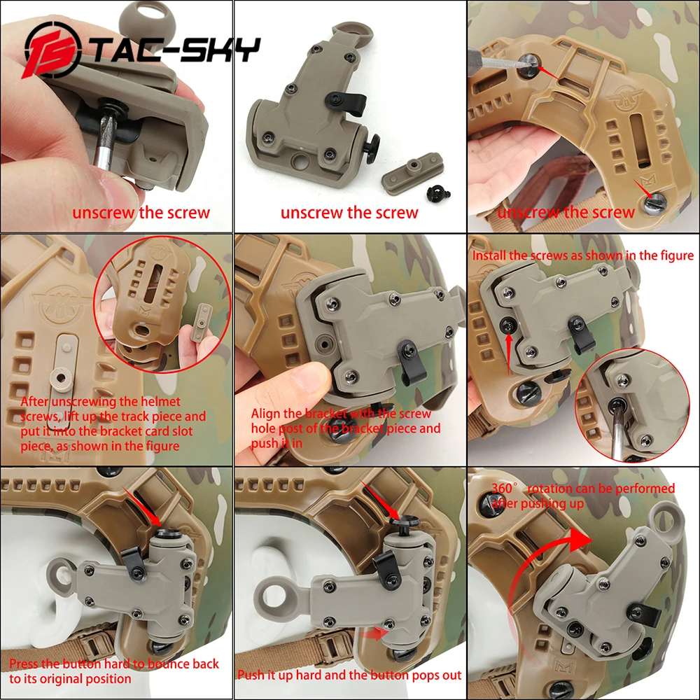 El adaptador de riel del soporte es la pista para casco MLOK, es adecuado para cascos MLOK.