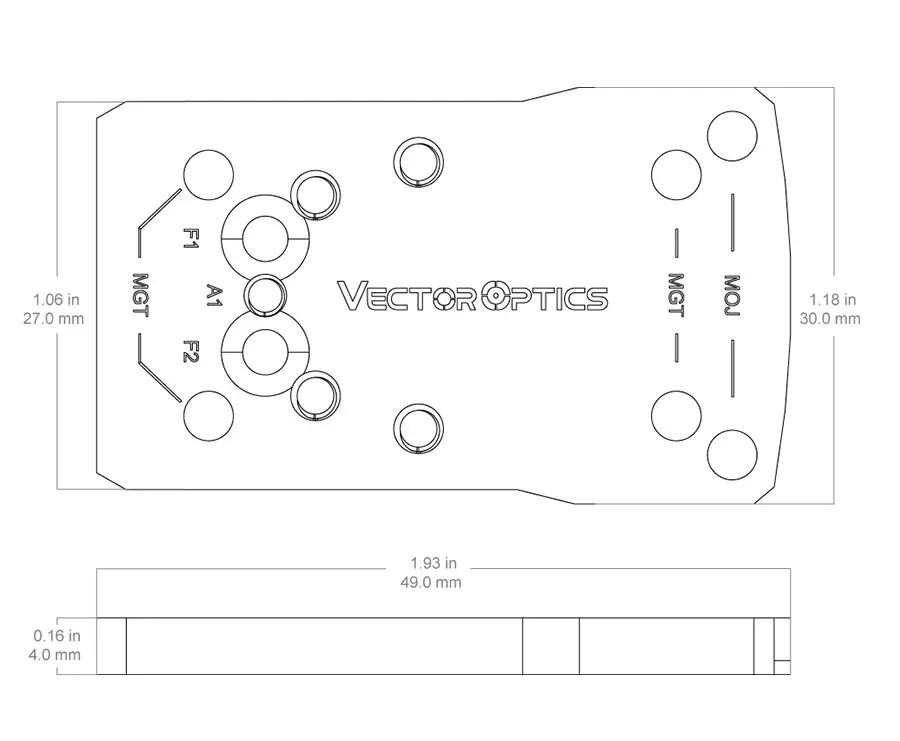 Se adapta a todos los Frenzy MOJ (compatible con RMR®) / MGT (Compatible con RMSc®/SMS®) Vistas de puntos rojos con huella