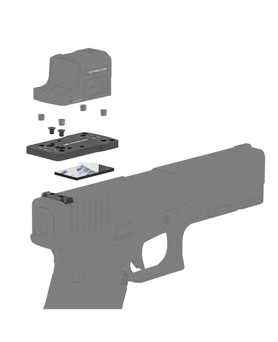 El adaptador universal se instala en cola de milano trasera después de retirar la mira trasera, listo para óptica para Glock de fuego real y Airsoft® diapositivas
