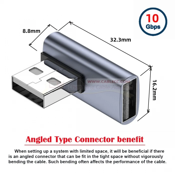 Adaptador USB 3,0 en ángulo, tipo A macho/hembra, admite transferencia de datos de 10Gbps.