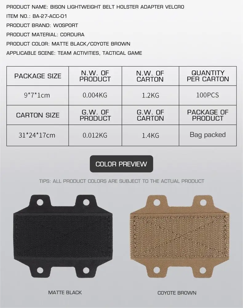 Adaptador de funda Modular táctica de 2 piezas, montaje para Panel, sistema de cinturón de batalla de dos piezas, equipo táctico