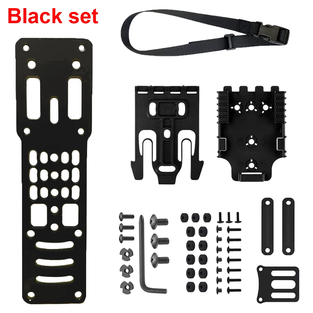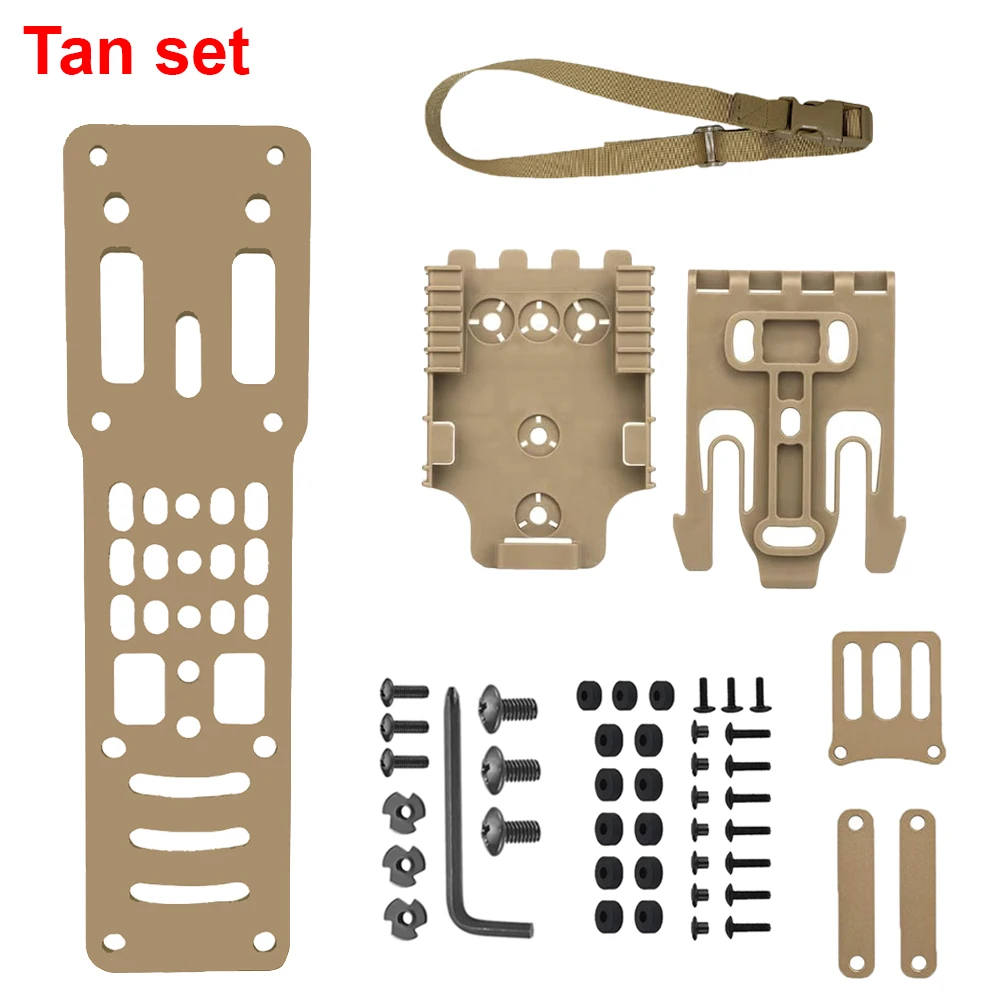 【Kit QLS】: Incluye horquilla de bloqueo rápido y placa receptora. Se puede conectar directamente a una funda o con otros adaptadores a un cinturón de batalla, un trípode y otros equipos tácticos.