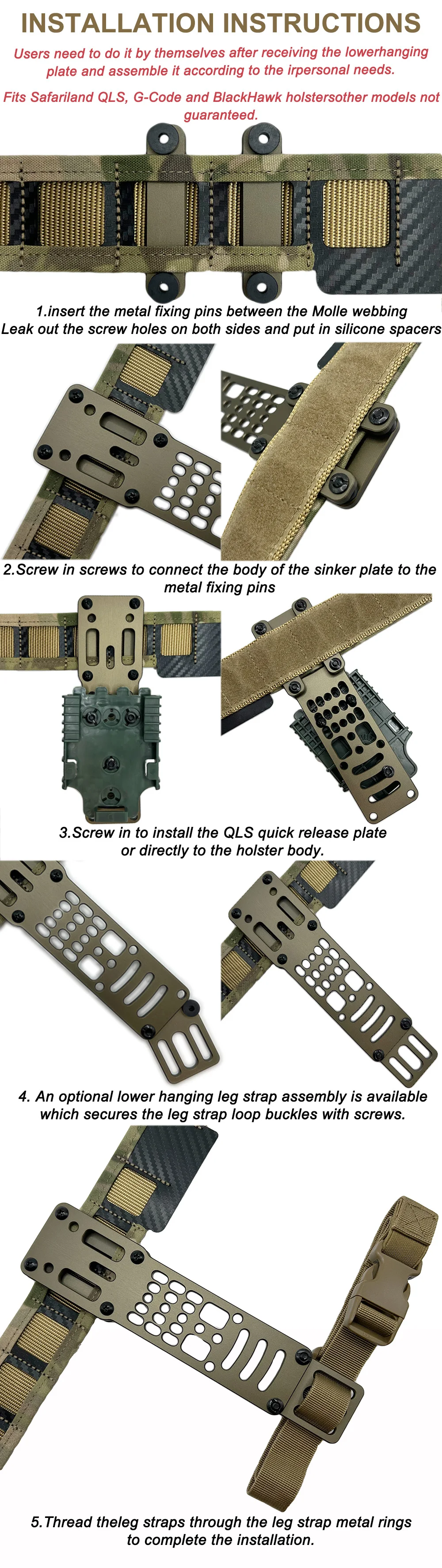 Adaptador de funda de pistola modular de Metal táctico, transporte de pierna para QLS, Kit de funda con correa para pierna, equipo Airsoft, accesorios de caza