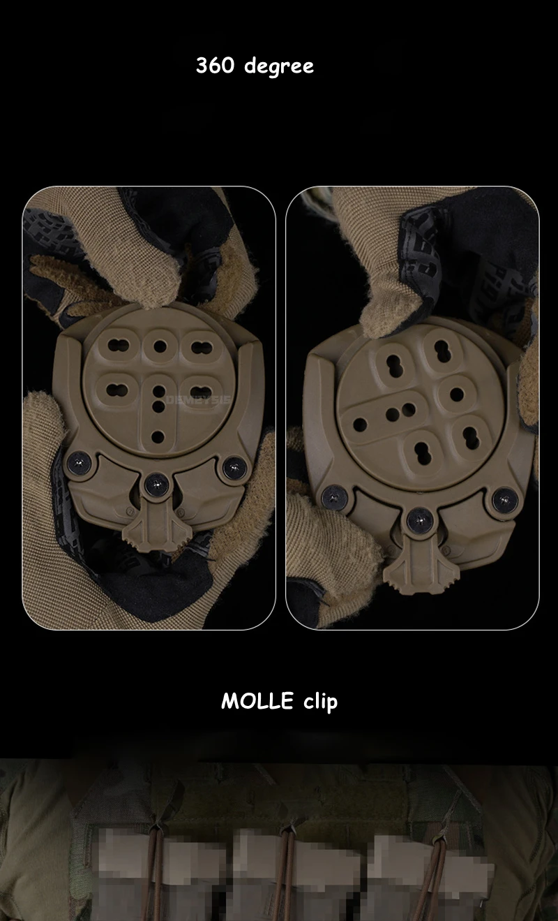 �� MOLLE/Cinturón híbrido – El clip ajustable se adapta a la mayoría de los cinturones/correas.