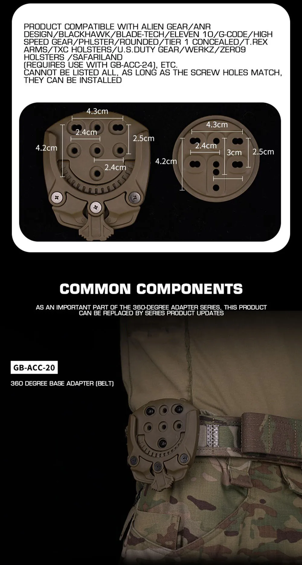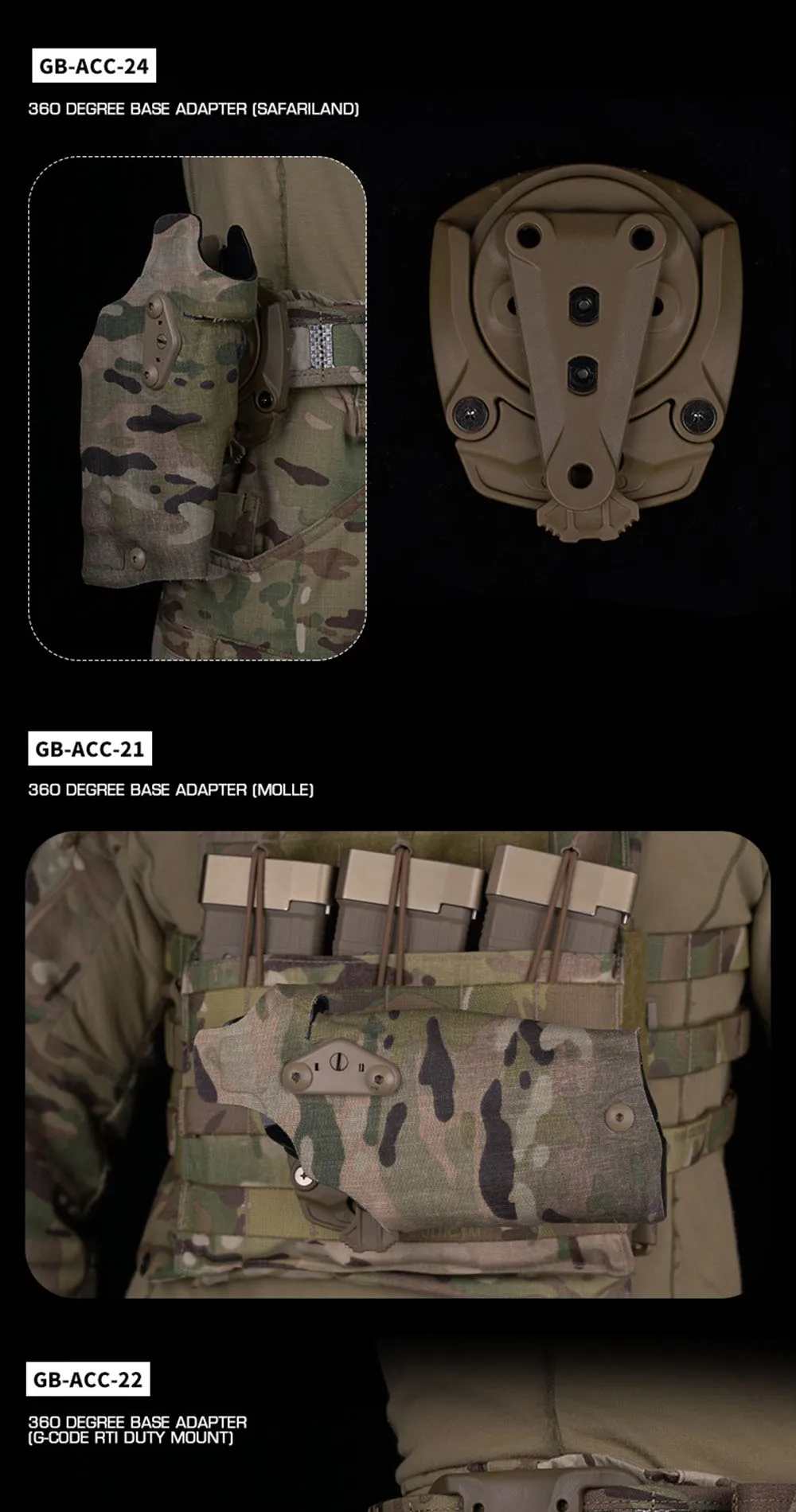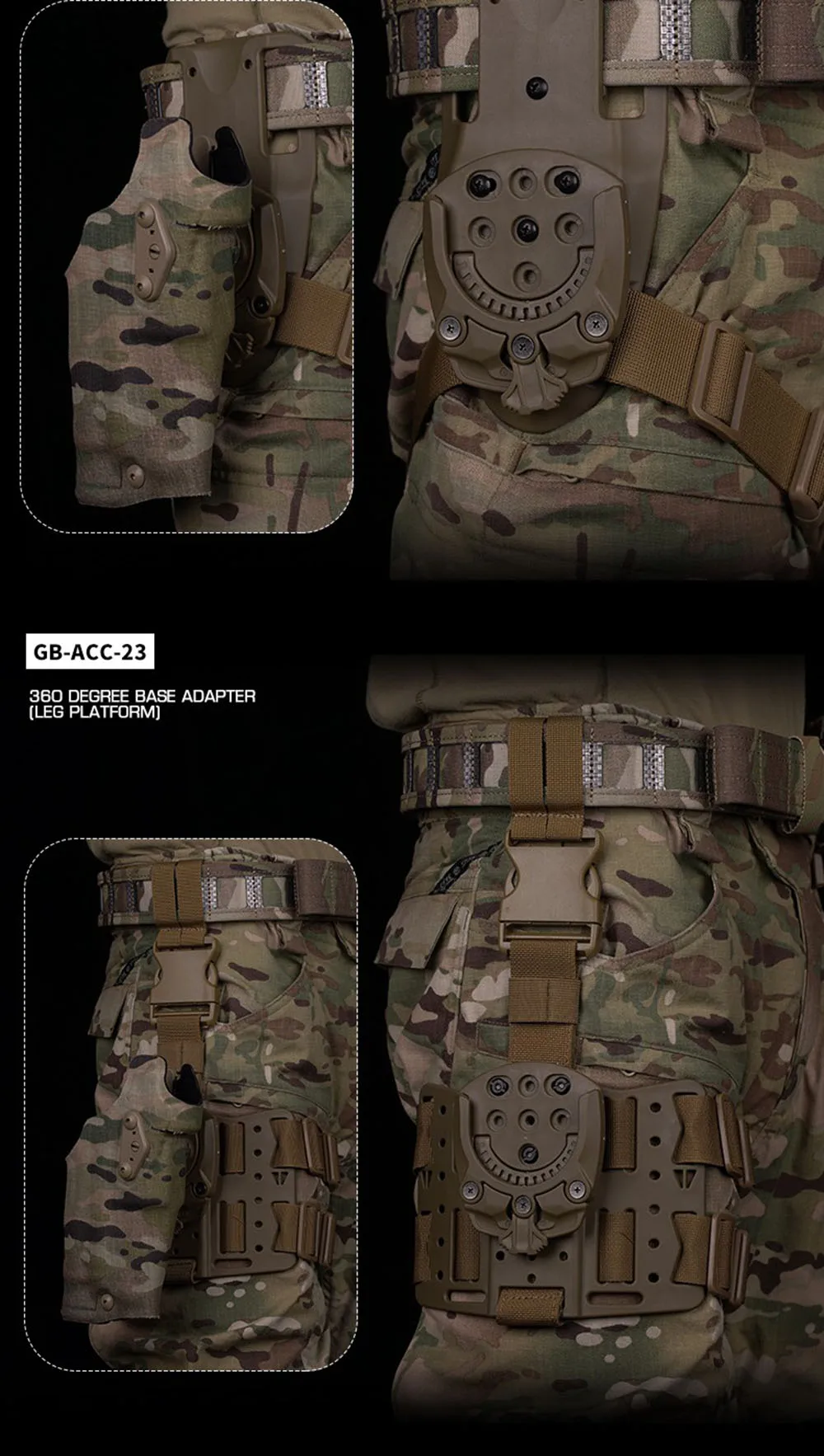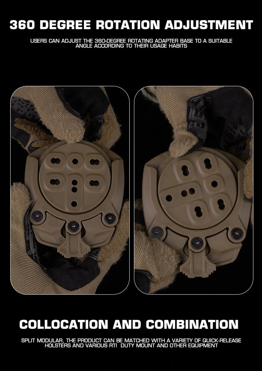 Adaptador de base de 360 grados para soporte de funda táctica de extracción rápida
