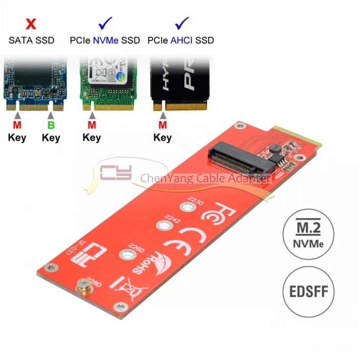 Adaptador de host NVMe NGFF M-key 4X a regla 1U EDSFF Short SSD E1.S Carrier Adapter