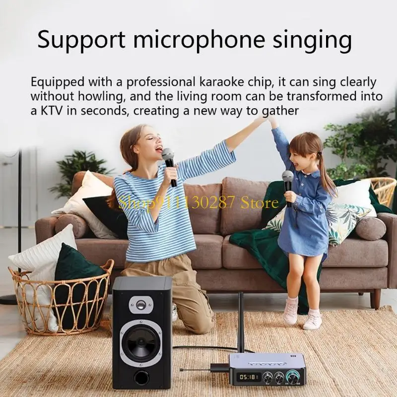 Características:OOTDTYFunciones básicas: receptor compatible con Bluetooth, transmisor compatible con Bluetooth, reproducción de disco U, reproducción de tarjeta TF, control remoto, toque NFC, canto de micrófono, pantalla digital HD DSP ajustable alto y bajo