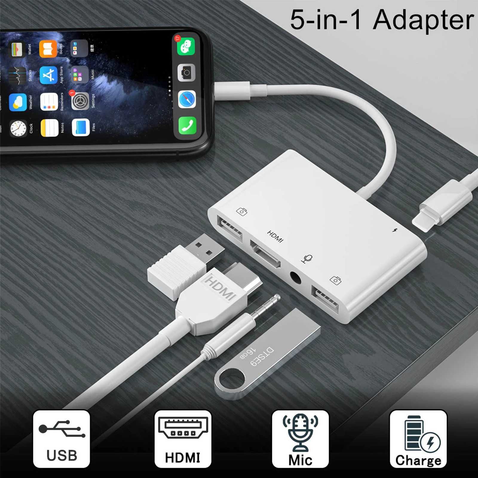 Este adaptador de iPhone a TV es compatible con iPhone14/ 13mini/ 13Pro/ 13Pro max/ 12mini/ 12/ 12Pro/ 12Pro max/ 11/ 11 Pro/ 11 Pro/ 11 Pro Max/ SE/ X/ XS / XS Max/ XR/ 8 / 8 Plus/7/6 Plus/6S/ 5S/ 5C/ SE/ iPad Air/ iPad/ iPad Mini Series,