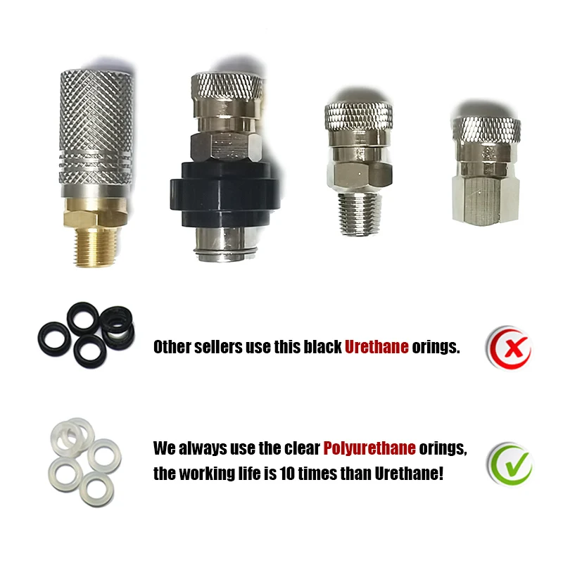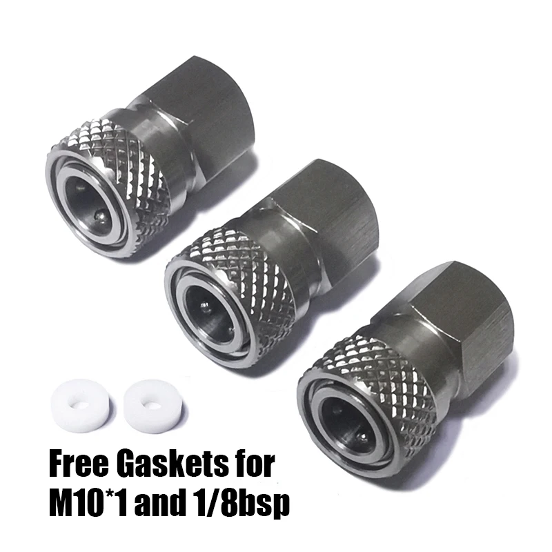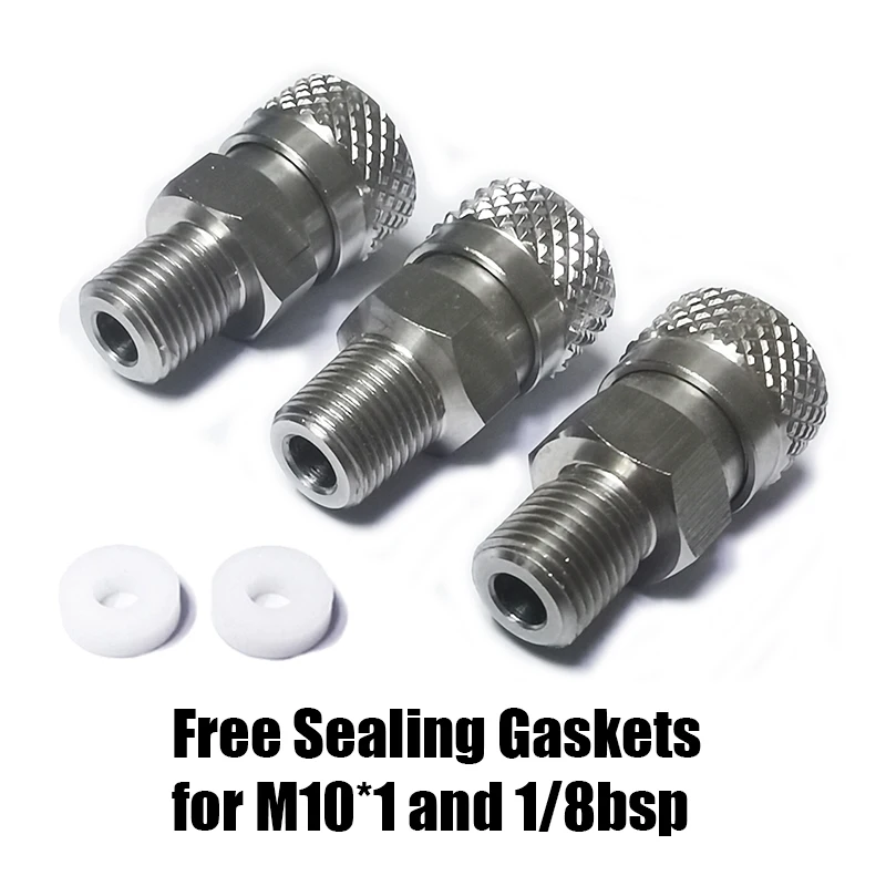 El adaptador de desconexión rápida tiene rosca macho/hembra 1/8NPT y rosca macho 1/8BSP(G1/8) y macho M10 * 1 puede ser elegido.