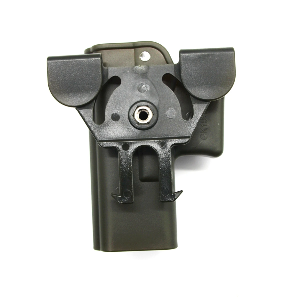 Hecho de polímero de alta densidad. Color: negro, tostado, verde militar, gris permite el montaje en portadores de placas, armadura corporal de cinturones de batalla, equipo de carga, chalecos, bolsas tácticas, bolsas, etc. Asegura fundas y accesorios de fibra de carbono como fundas para revistas. Viene con un adaptador de suspensión de funda para MOLLE. El diseño de trinquete permite la personalización de la funda no puede