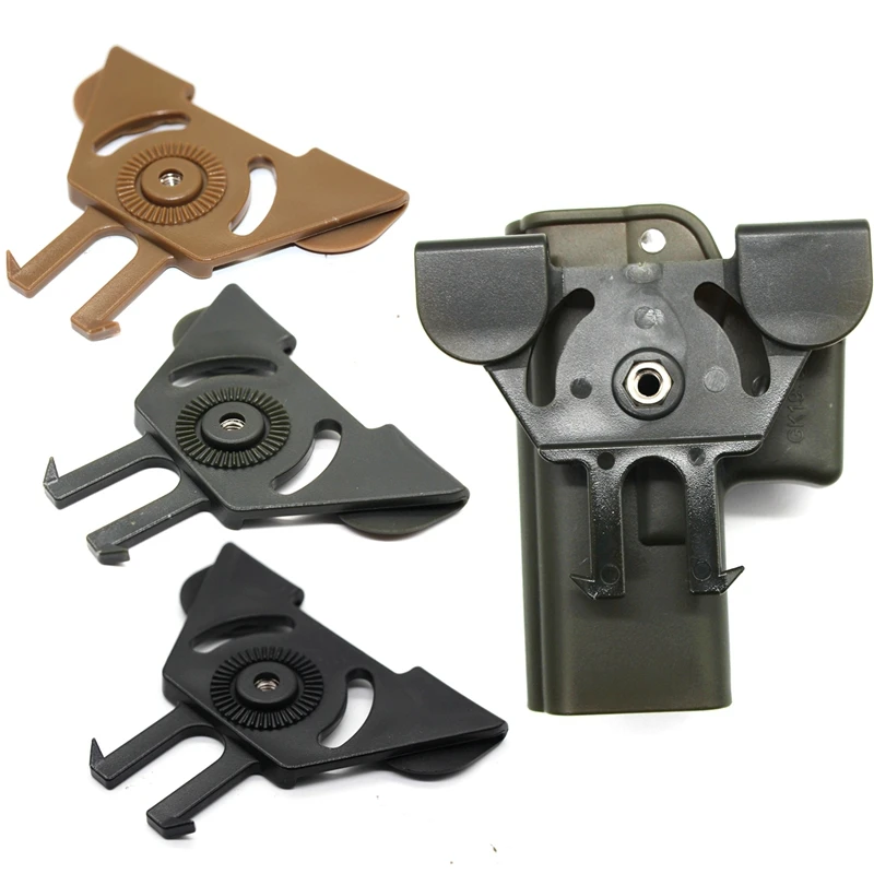 Hecho de polímero de alta densidad. Color: negro, tostado, verde militar, gris permite el montaje en portadores de placas, armadura corporal de cinturones de batalla, equipo de carga, chalecos, bolsas tácticas, bolsas, etc. Asegura fundas y accesorios de fibra de carbono como fundas para revistas. Viene con un adaptador de suspensión de funda para MOLLE. El diseño de trinquete permite la personalización de la funda no puede