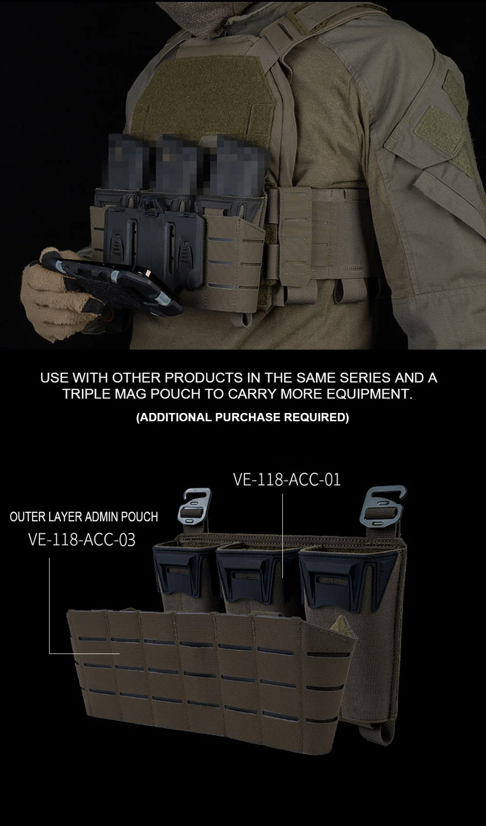 Nombre del producto: Placa MOLLE de segunda capa con bolsa triple tipo K
