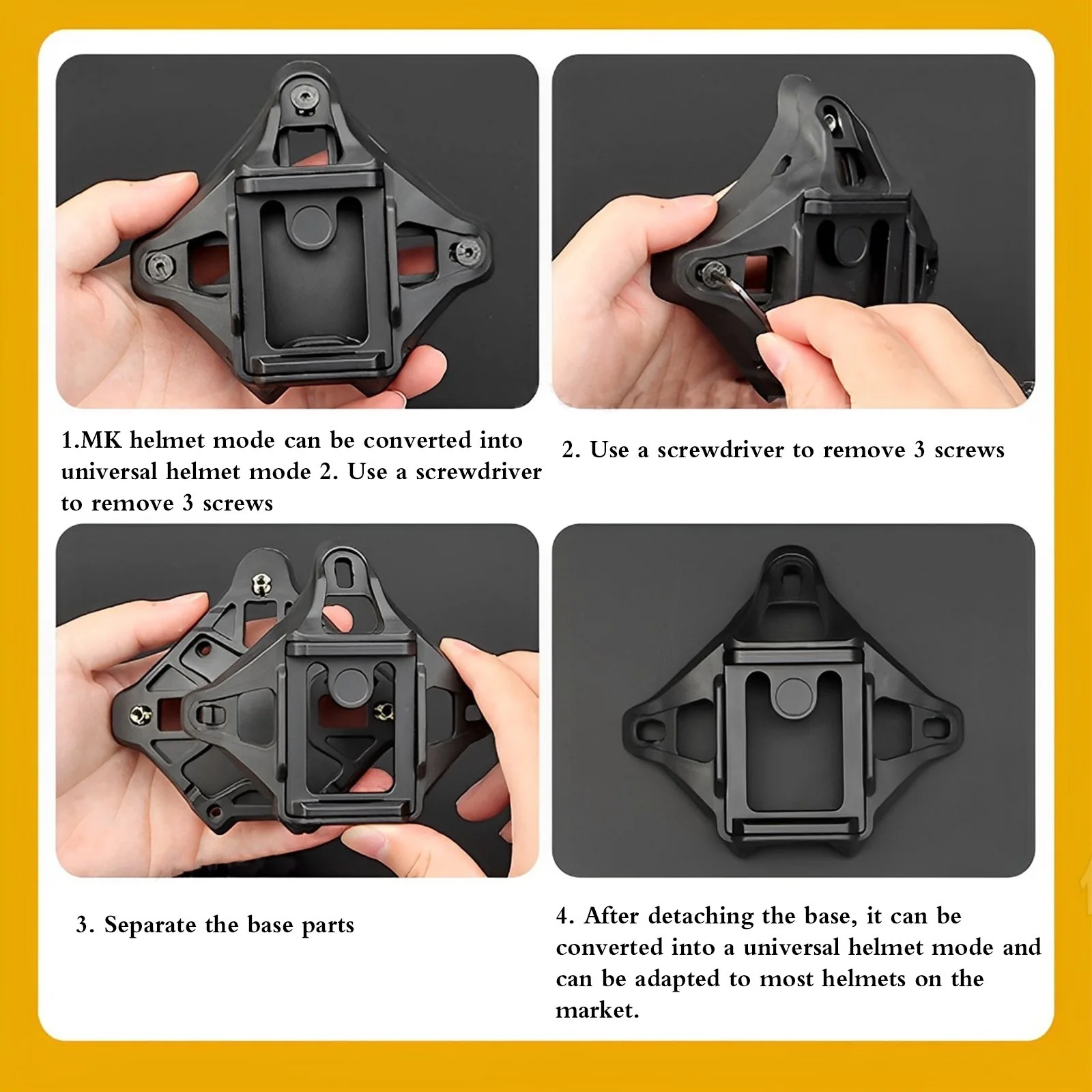 La cubierta NVG de 3 orificios está hecha de nailon y la estructura de aluminio en el medio la hace más ligera y más fuerte que la cubierta anterior, para el equilibrio perfecto de resistencia y ahorro de peso.