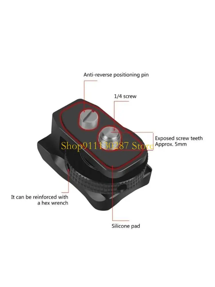 Hay 3 orificios para tornillos de pasador de posicionamiento anti-retroceso con una distancia de orificio de 9 mm alrededor del tornillo de 1/4.Después de instalar el pasador de posicionamiento, se puede utilizar para orificios de tornillo de 2x 1/4 con una distancia de orificio de 9 mm para evitar la rotación inversa y evitar que el equipo se afloje y provoque que el equipo se caiga.