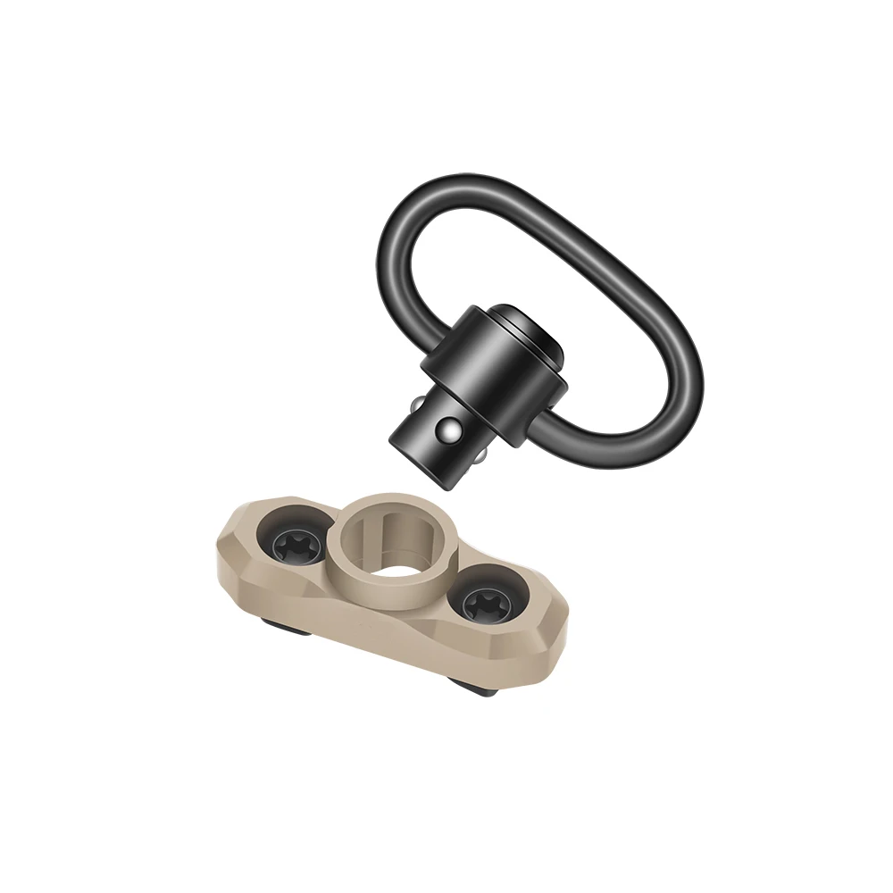 El soporte QD es un diseño de perfil bajo para guardamanos M-Lok.Cuenta con una interfaz antirotación y acepta todos los giratorios de eslinga QD estándar, así como el eslinga de eslinga QD forjada con Geissele/ALG Defense.