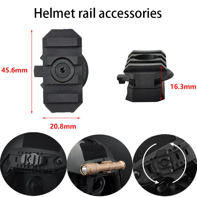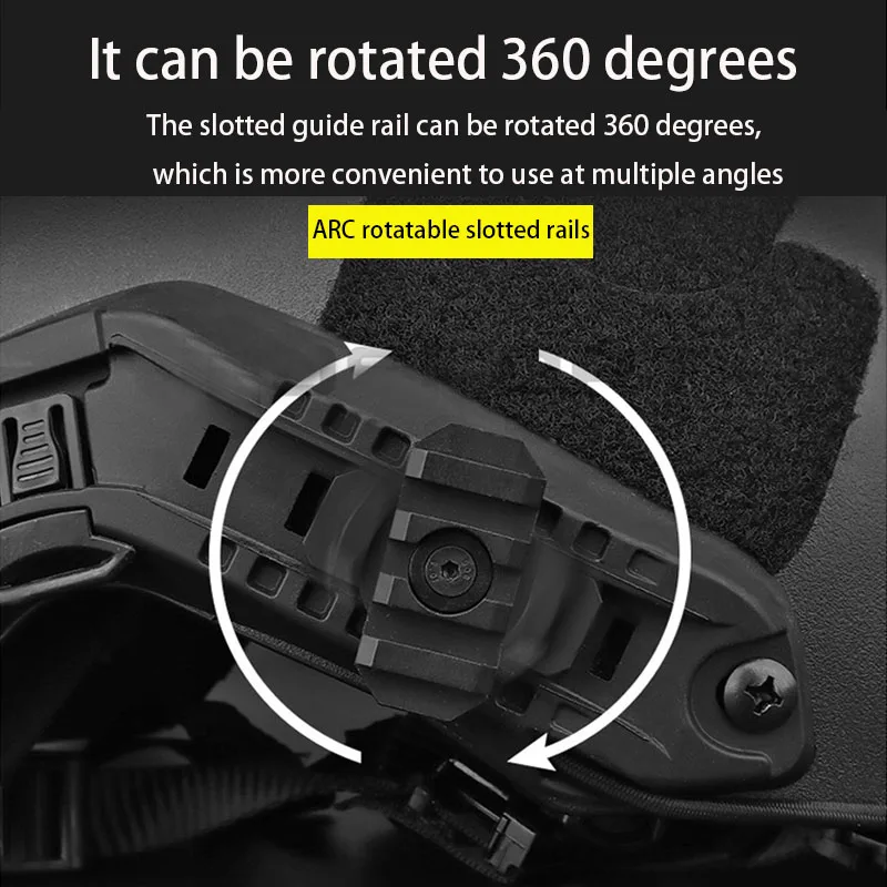 Adaptador de montaje de riel lateral para casco táctico, guía militar de rotación de 360 grados, accesorios de caza para casco rápido Airsoft, 2 uds.