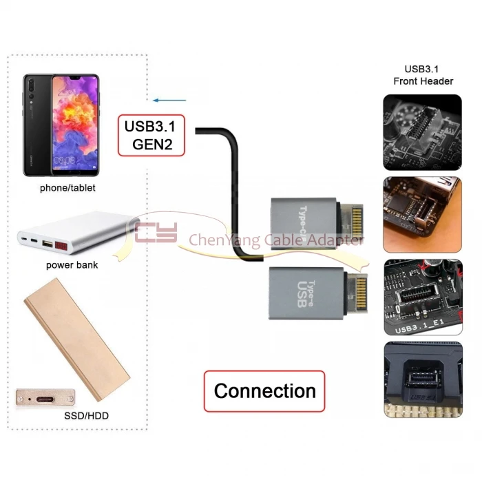 Adaptador de datos de extensión de placa base macho tipo E a tipo A y tipo C de 2 3,1 USB para panel frontal