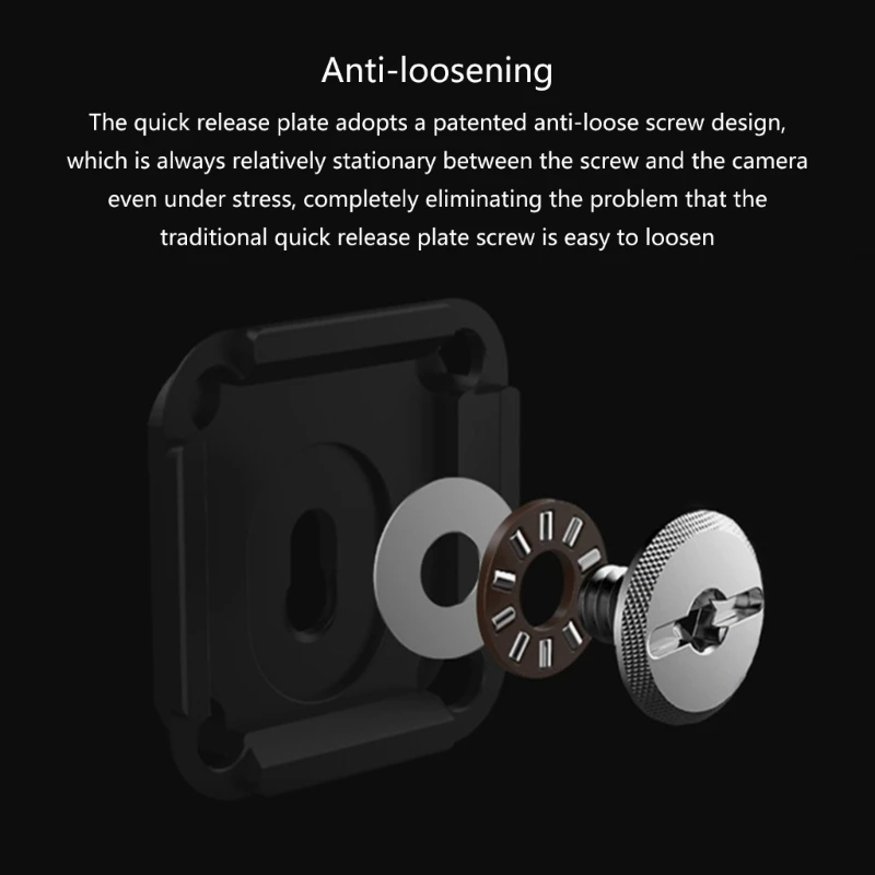 Mayor agarre, extremadamente seguro: Presione el botón para bloquearlo de forma más segura para evitar que se desbloquee accidentalmente. La placa utiliza un tornillo de ajuste hermético patentado que contiene un rodamiento de agujas de empuje, lo que garantiza que la placa no se deshaga. Monta su cámara de forma muy segura.