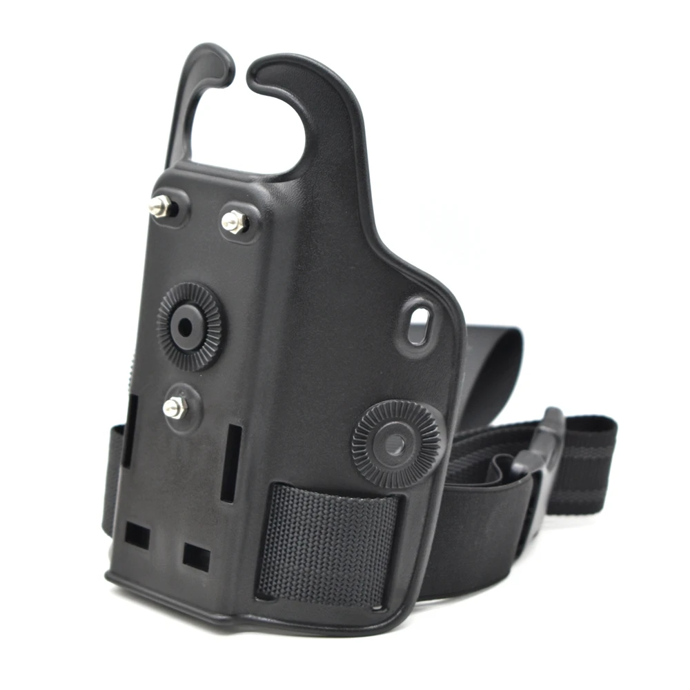 El conducto guía especial mantiene la pistola en su lugar y un tornillo de tensión ajustable permite el uso de la mayoría de tamaños de pistola,