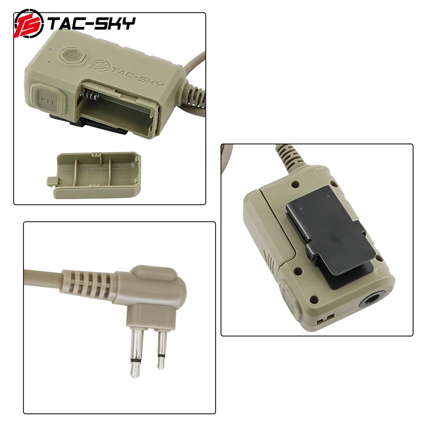 2.PTT viene con cable adaptador U-174.Si sus auriculares son una versión civil de unos auriculares tácticos, puede utilizar el PTT directamente sin un cable adaptador.Si sus auriculares tácticos son la versión militar, deberá utilizar el cable adaptador.