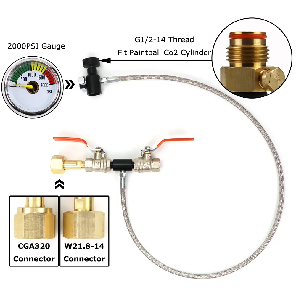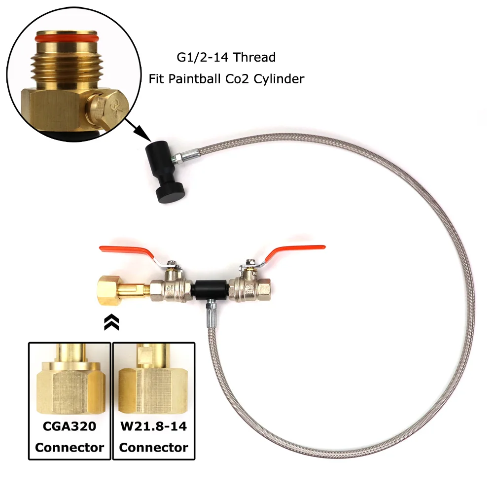 Rellene sus tanques de Co2 más pequeños desde un tanque de Co2 más grande, apto para tanque de CO2 de Paintball de rosca G1/2-14.