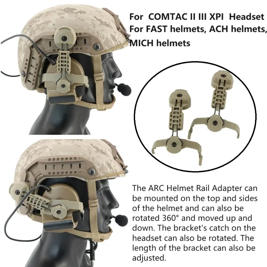 Soporte para casco táctico Adaptador de riel ARC El soporte para auriculares es compatible con auriculares tácticos COMTAC II, COMTAC III