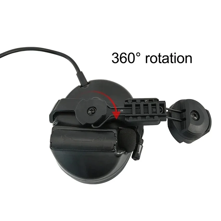 4.El adaptador de riel para casco ARC se puede montar en la parte superior y los lados del casco y también se puede girar 360° y movido hacia arriba y hacia abajo.El cierre del soporte en los auriculares también se puede girar.La longitud del soporte también se puede ajustar.