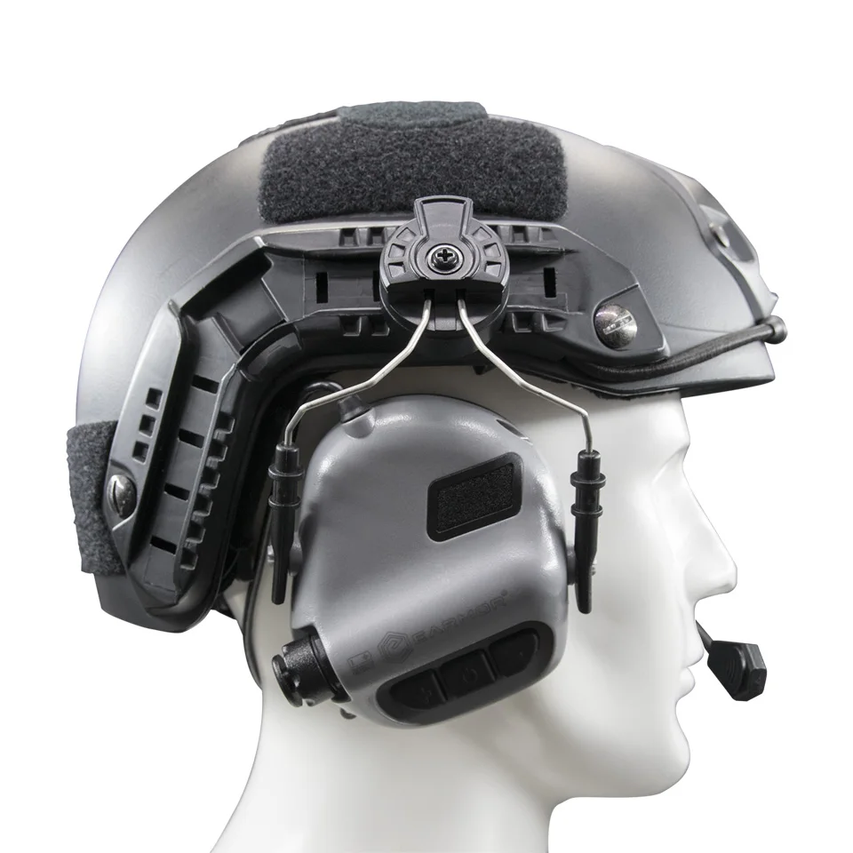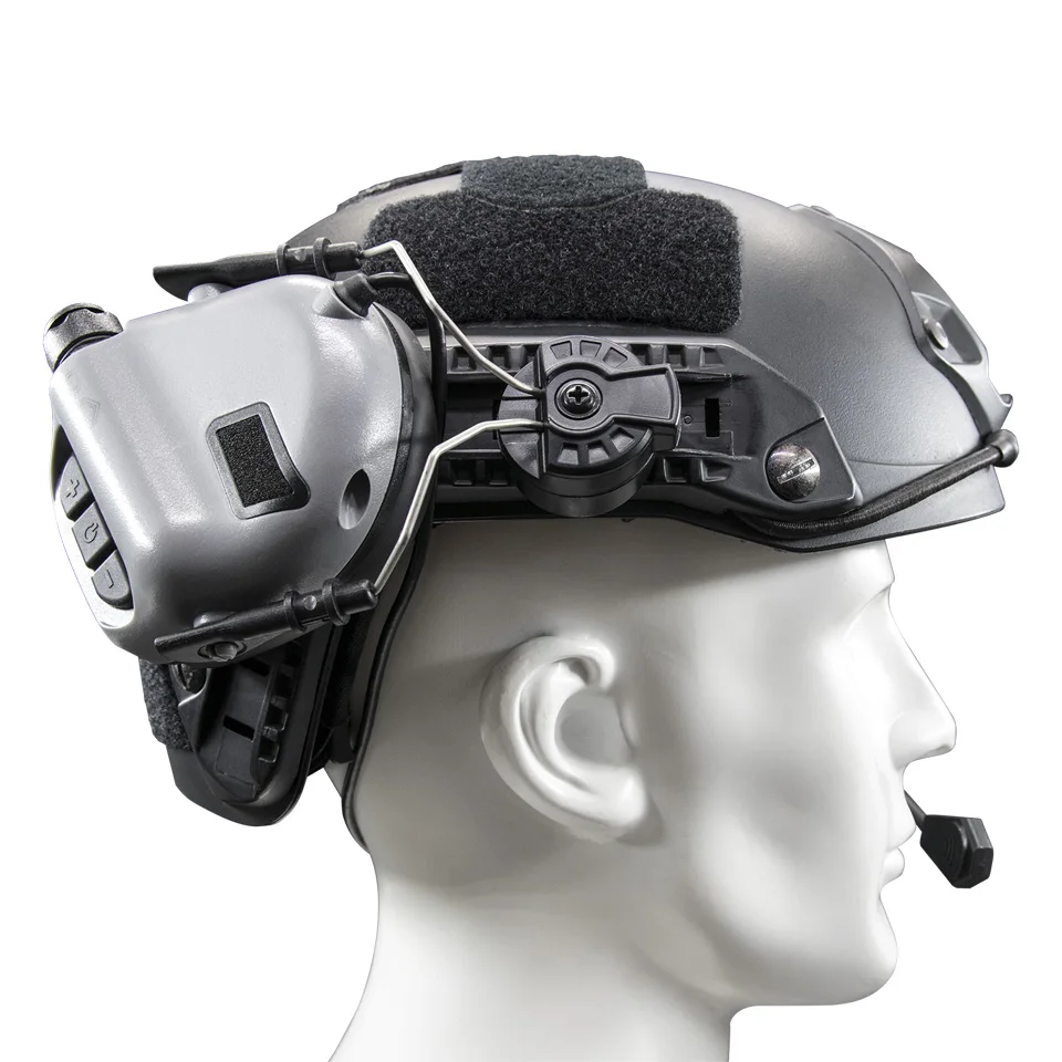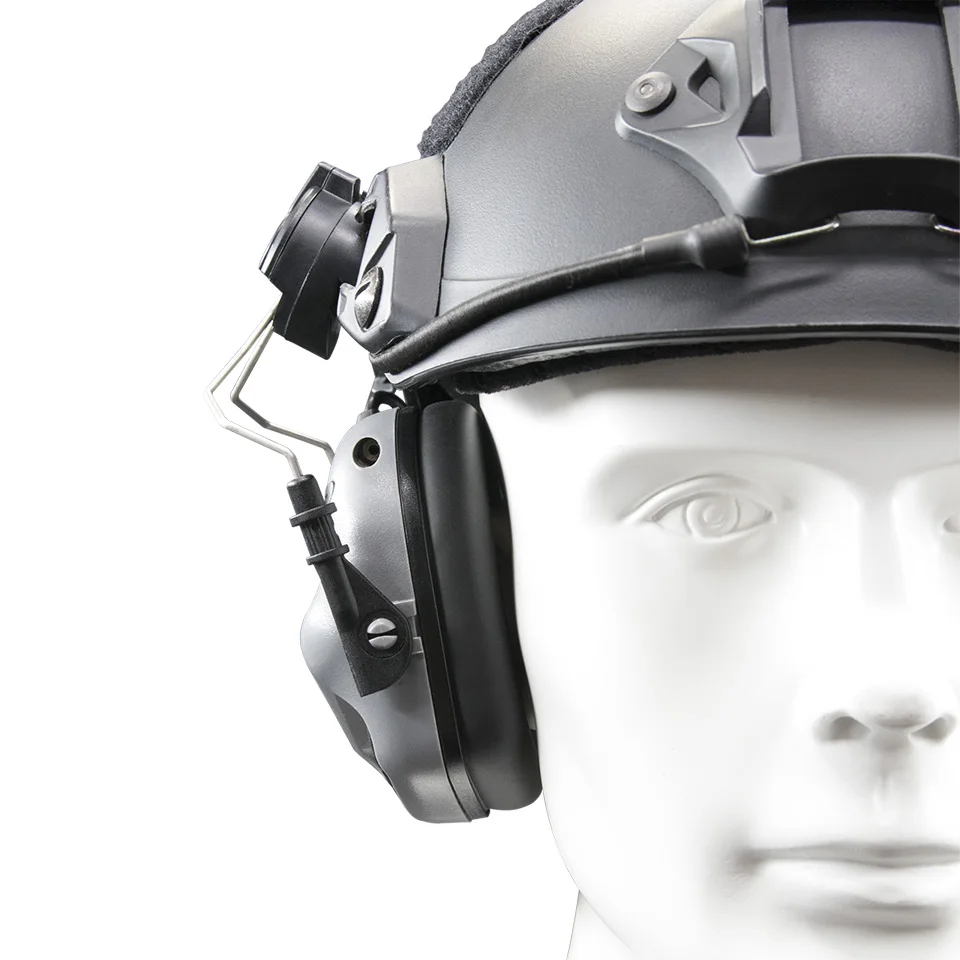 -Para rieles de cascos ARC (Ops-Core FAST MT). Los soportes de las orejeras que se pueden adaptar fácilmente a la mayoría de auriculares de reducción de ruido permiten instalar las orejeras en el riel del casco militar ARC.