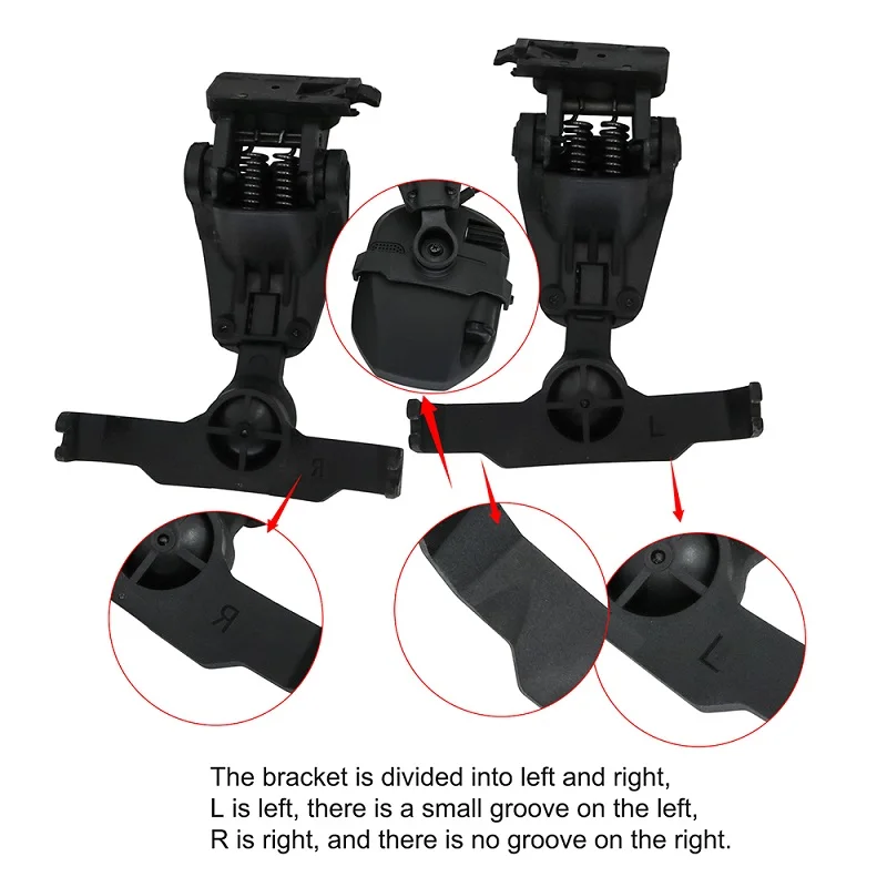 Este adaptador de riel de casco ARC puede girar 360 ° y oscilar hacia arriba y hacia abajo. La posición de la tarjeta del soporte en los auriculares también se puede girar. La longitud del soporte también se puede ajustar. Colocar el soporte a los auriculares es simple y fácil de usar.