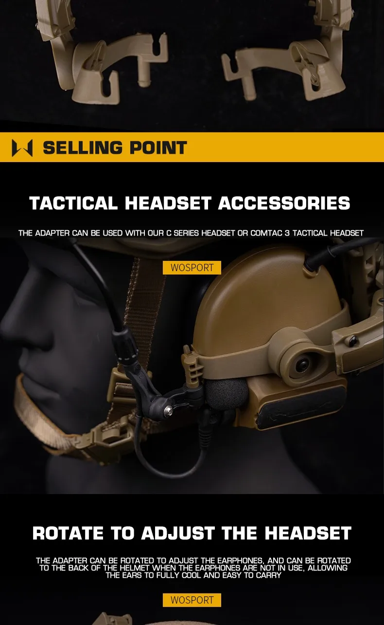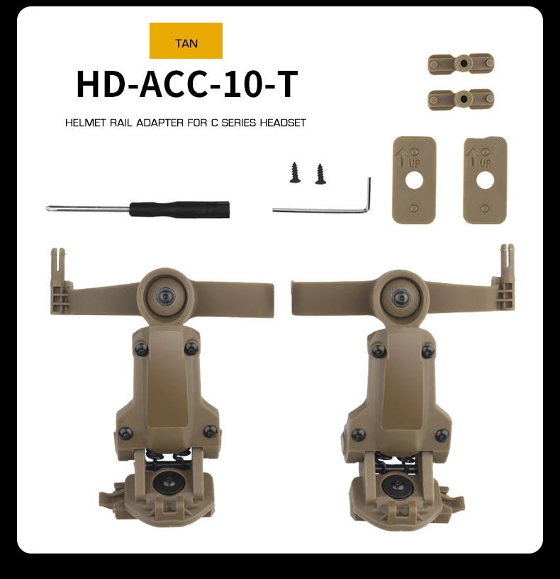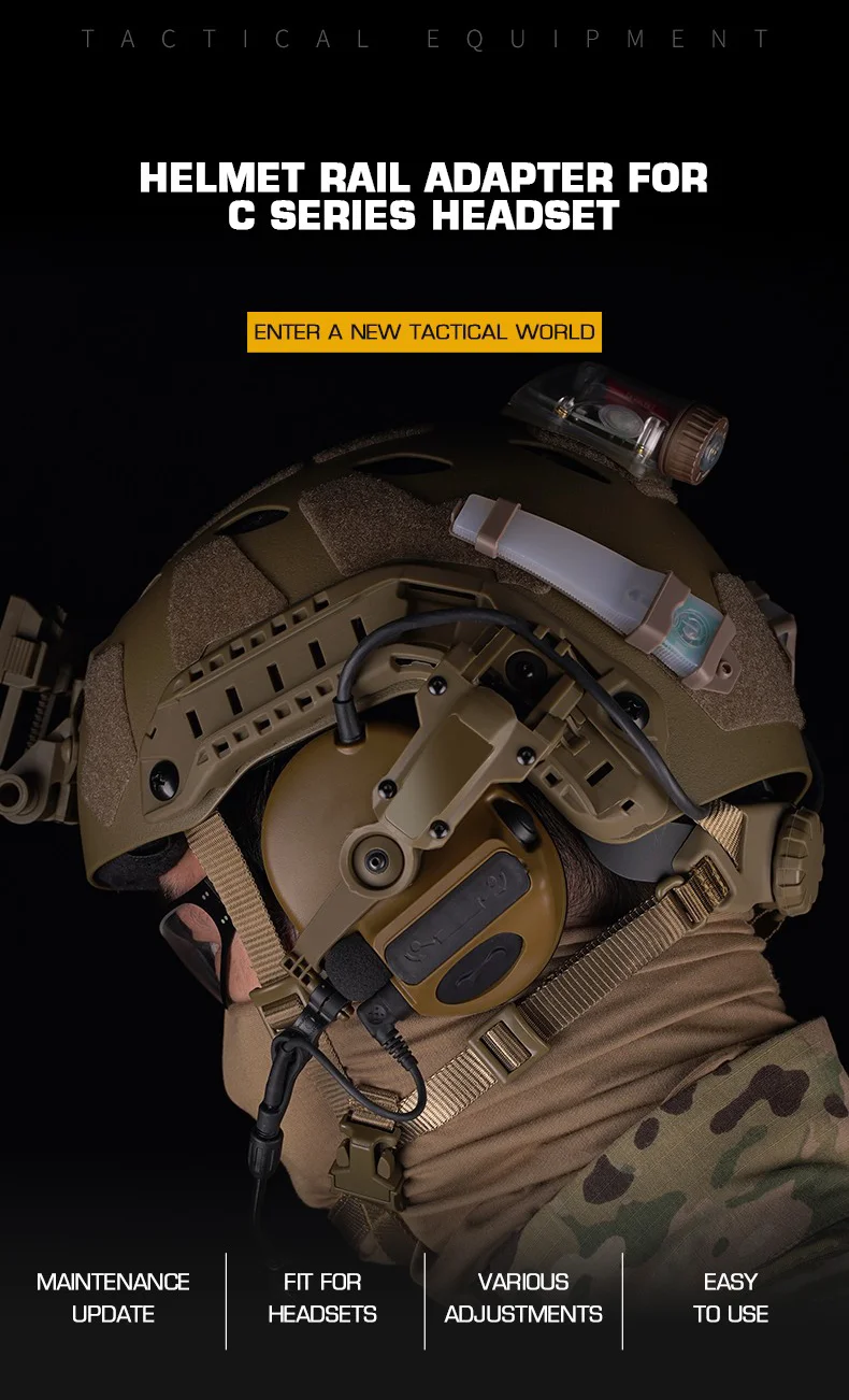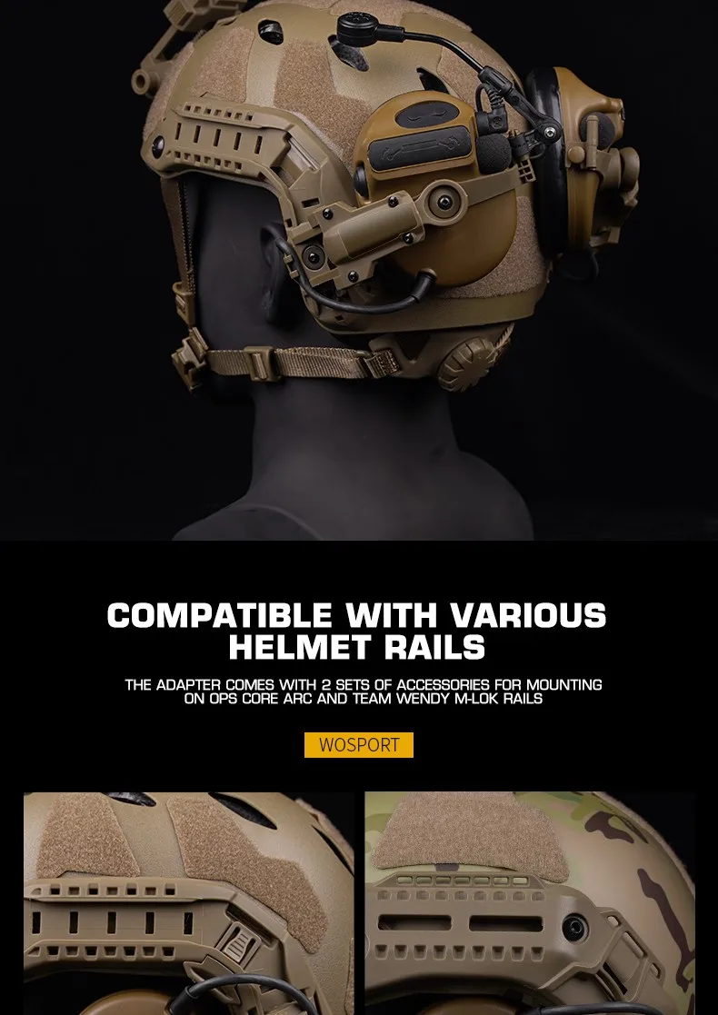 Adaptador de riel de casco táctico militar para auriculares tácticos de la serie C, adaptador de soporte de auriculares con rotación de 360 °, compatible con OPS CORE ARC M-LOK