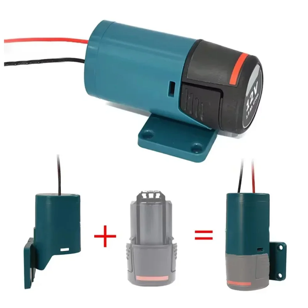 Conecte este producto a una batería de litio enchufable directa de 10,8-12 V, como Bosch, y use dos cables para extraer la energía de la batería para otros dispositivos con el mismo voltaje.Ayudante de jugadores de bricolaje, como un pequeño ventilador de CC, ropa calefactora, modificación de juguetes eléctricos, etc.