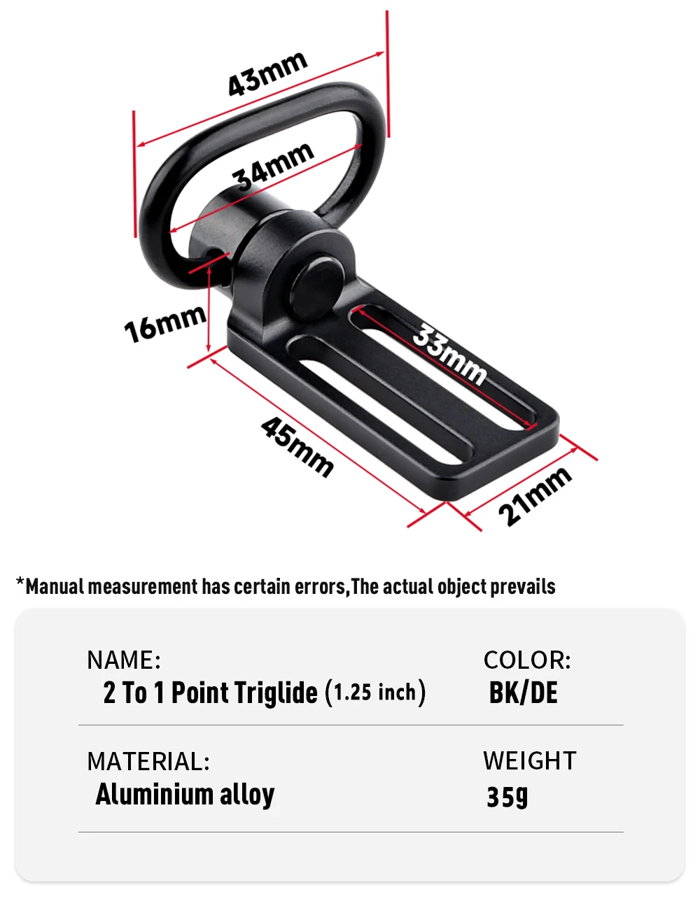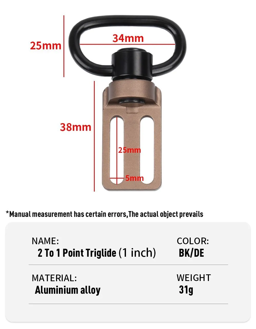 Táctico 2 a 1 punto Triglide Base giratoria Convertible QD Sling Adaptador de conversión 1 pulgada Qd Quick Detach Release Rotation Mount