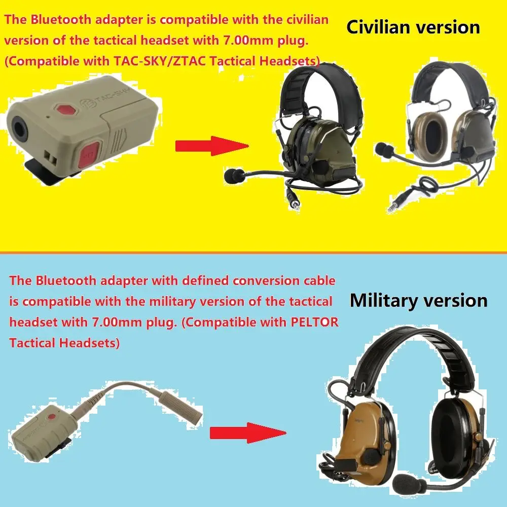 Adaptador táctico PTT Bluetooth TS TAC-SKY y adaptador de cableado U-174 NATO/militar a civil para auriculares tácticos de caza Airsoft