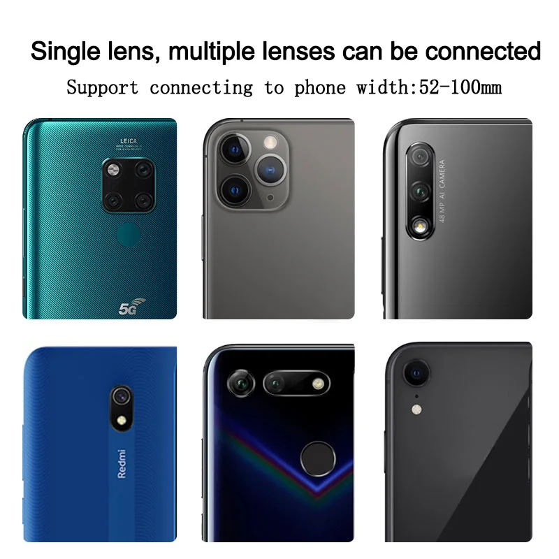DESCRIPCIÓN1. Bayoneta del ocular: el diámetro interno está entre 22,5 y 48 mm.2.Succionadora de goma: Conectada con un dispositivo móvil3. Cierre de bloqueo: gire en el sentido de las agujas del reloj hasta estrechar la bayoneta del ocular, o en el sentido contrario a las agujas del reloj para expandir la bayoneta del ocular, empuje hacia arriba para fijar la bayoneta del ocular.4. Tornillo de ajuste fino: afloje para ajustar la bayoneta del ocular.